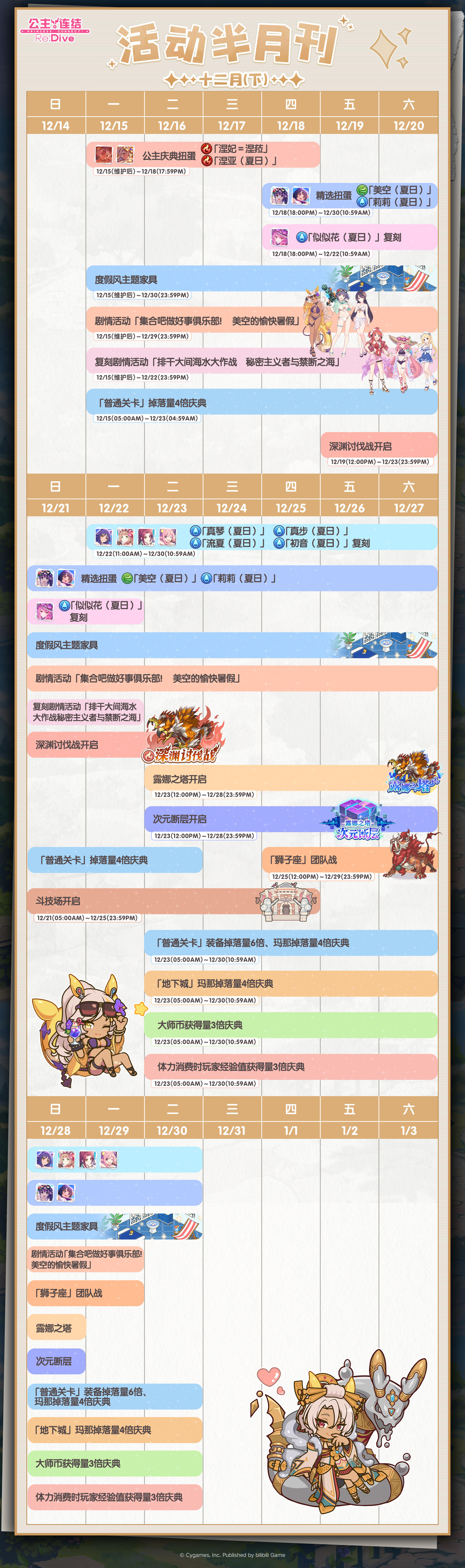 活动半月刊(十二月下)已公布,请骑士君留意十二月下旬常规活动的开展时间哦~