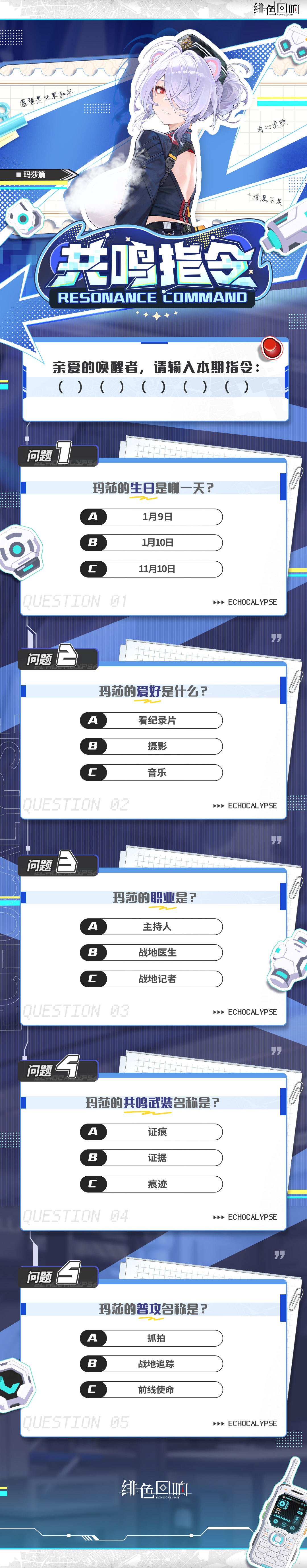 亲爱的唤醒者,全新MR共鸣者「玛莎」现已上线!大家对来自凛冬的她是否已经有一定了解了呢?现有5条关于「玛莎」的初级情报线索等待破解,快来留下你的指令答案吧~