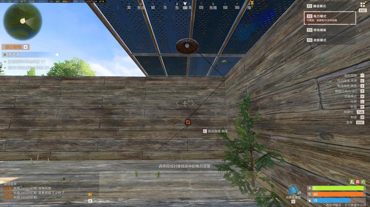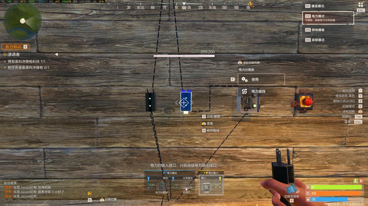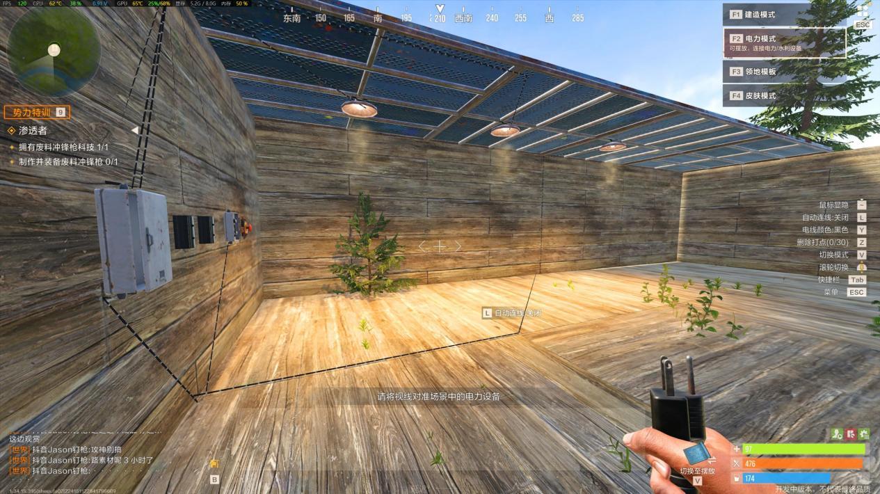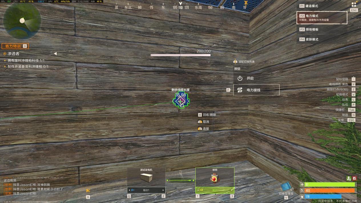 【实战任务:简易电灯装置】 操作步骤超简单,新手也能秒会:第一步,在堡垒合适位置安装一盏电灯;第二步,在电灯附近放置一个按钮(或开关,根据需求选);第三步,用导线将电灯和按钮连接起来,并接入基础电源;最后按下按钮,电灯就能正常亮起啦。这个基础电路能帮你熟悉“电源-控制元件-用电器”的核心逻辑,后续复杂电路都是在此基础上扩展的。