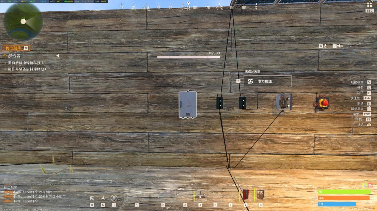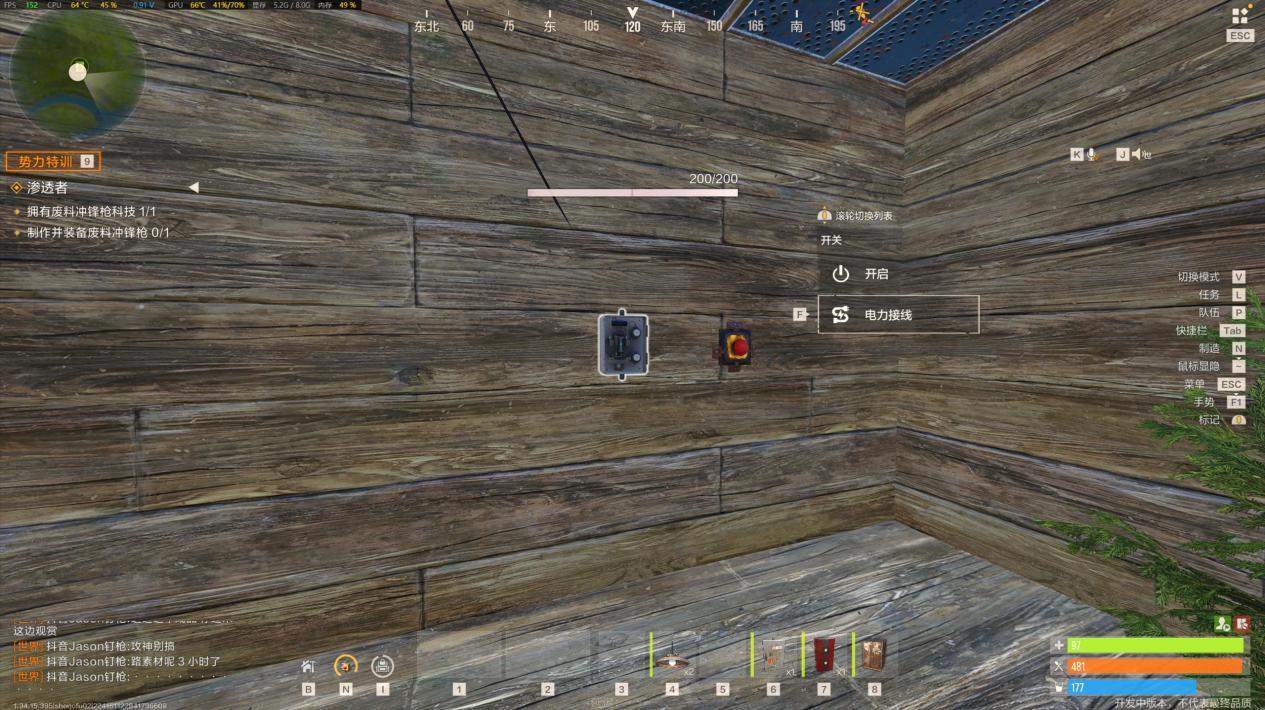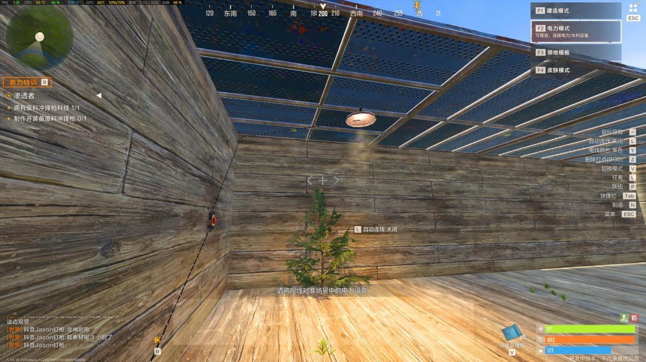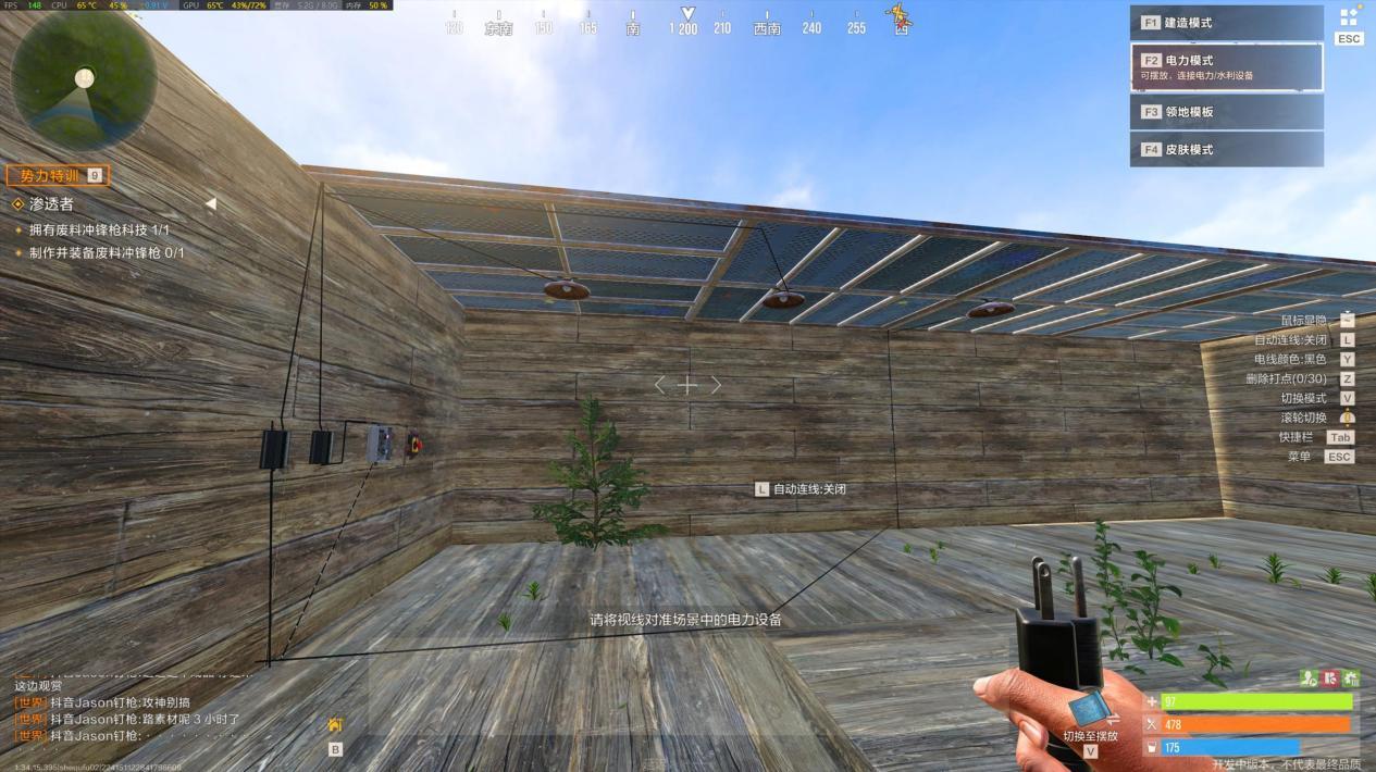 【实战任务:简易电灯装置】 操作步骤超简单,新手也能秒会:第一步,在堡垒合适位置安装一盏电灯;第二步,在电灯附近放置一个按钮(或开关,根据需求选);第三步,用导线将电灯和按钮连接起来,并接入基础电源;最后按下按钮,电灯就能正常亮起啦。这个基础电路能帮你熟悉“电源-控制元件-用电器”的核心逻辑,后续复杂电路都是在此基础上扩展的。