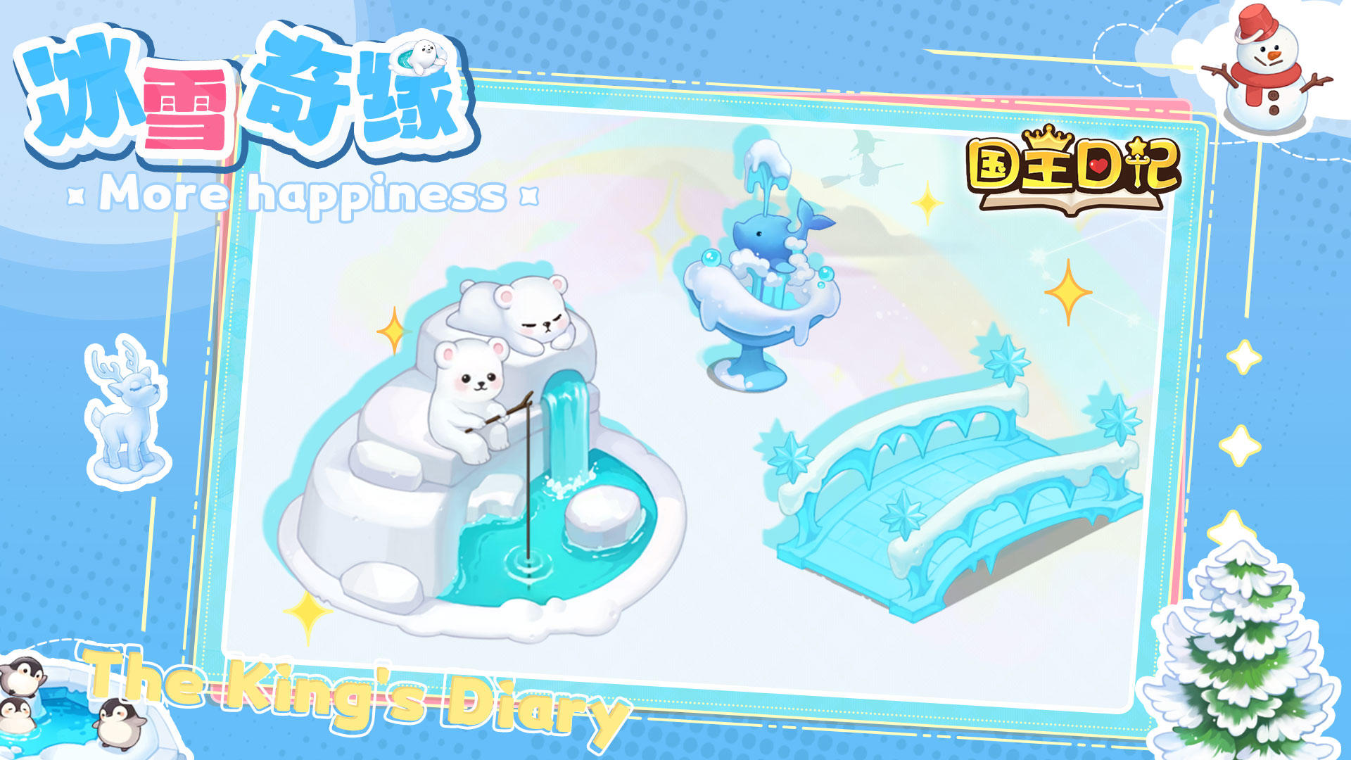 谁能拒绝在《国王日记》里亲手搭一座冰雪王国呢?新冰雪奇缘主题场景直接戳中经营党 + 收集党的双重爽点 ——