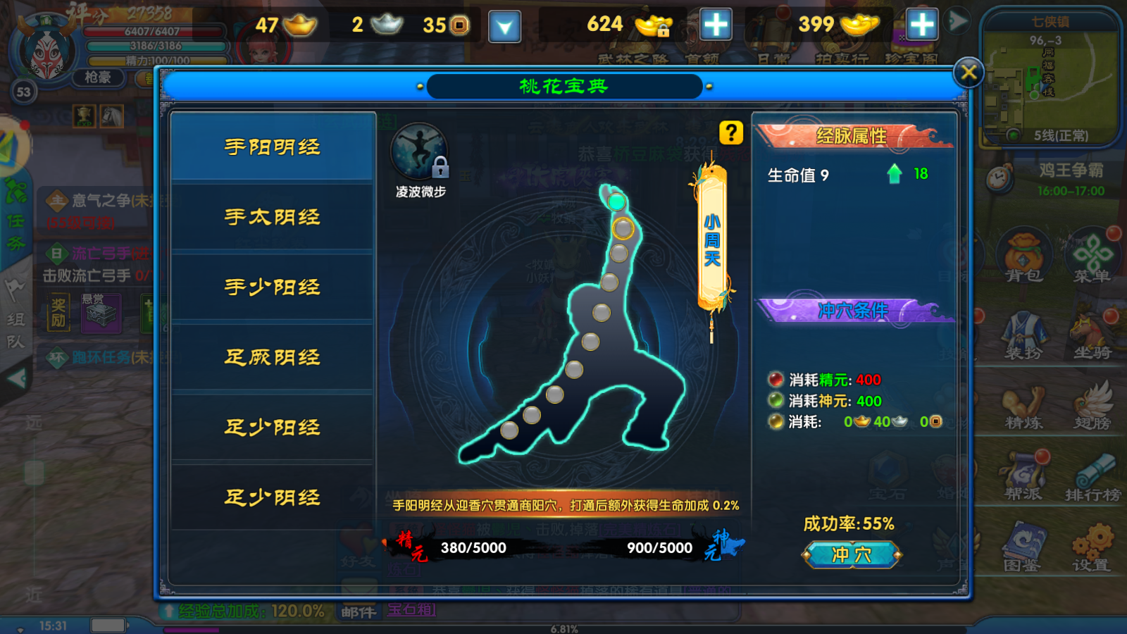 - 「桃花宝典」冲穴提升经脉,还能习得「凌波微步」轻功,跑图更快更帅。