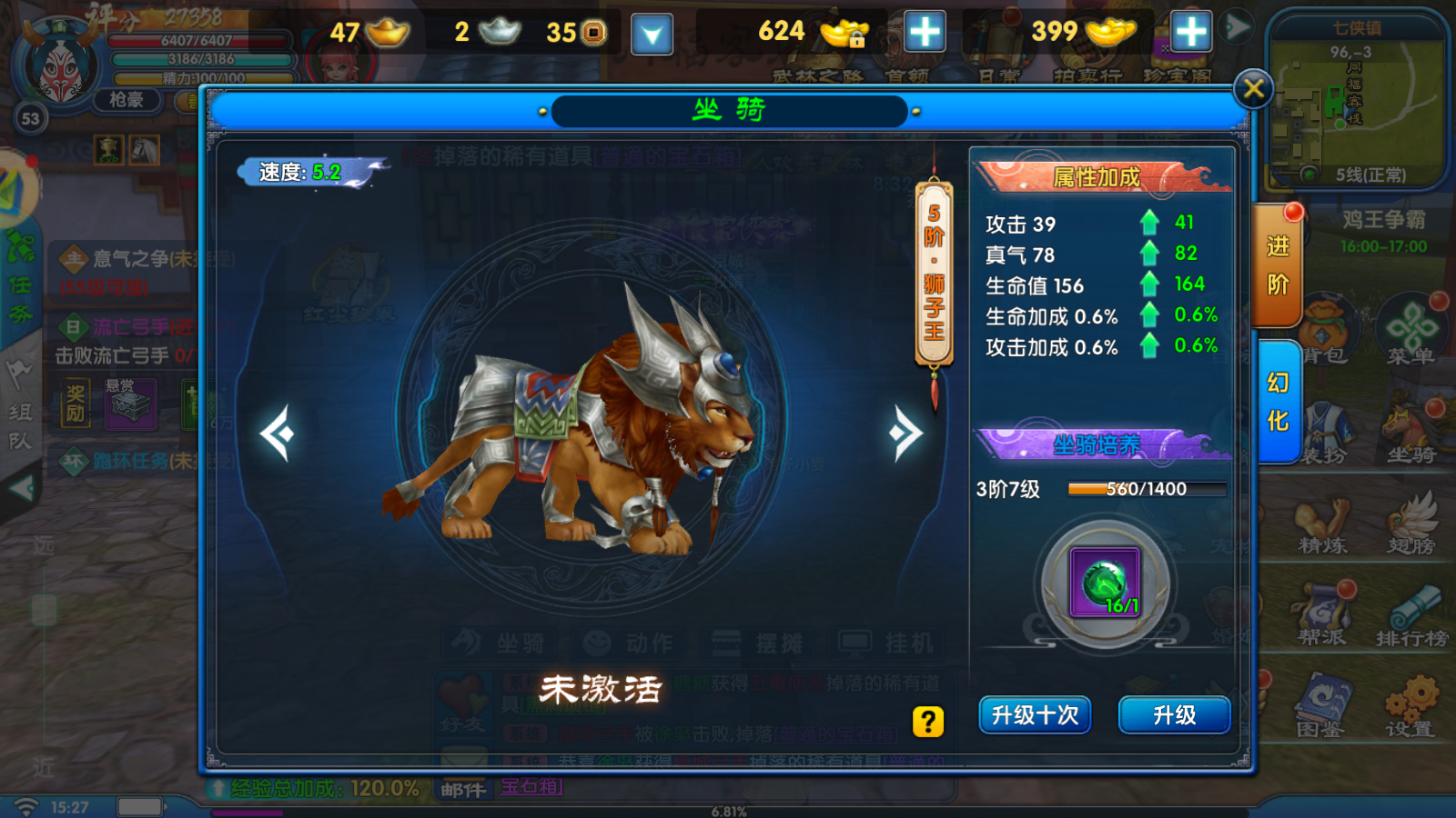 - 称号、装扮、翅膀、坐骑幻化激活后,永久属性叠加;