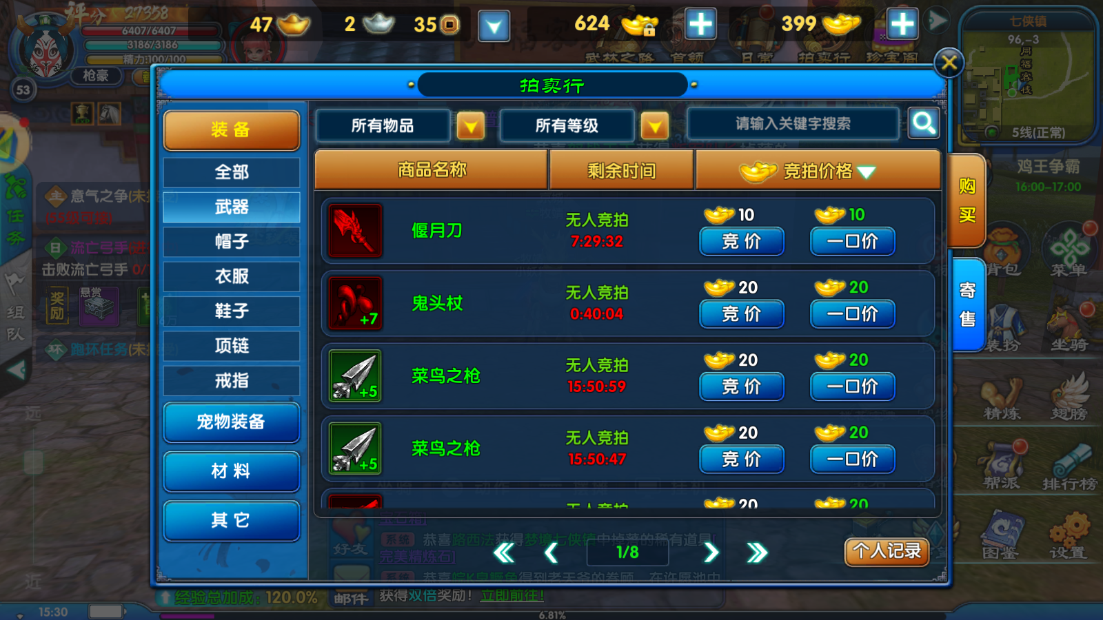 - 畅销道具:金条、黑木令、玄铁令、完美精炼石,可通过拍卖行 / 摆摊出售;