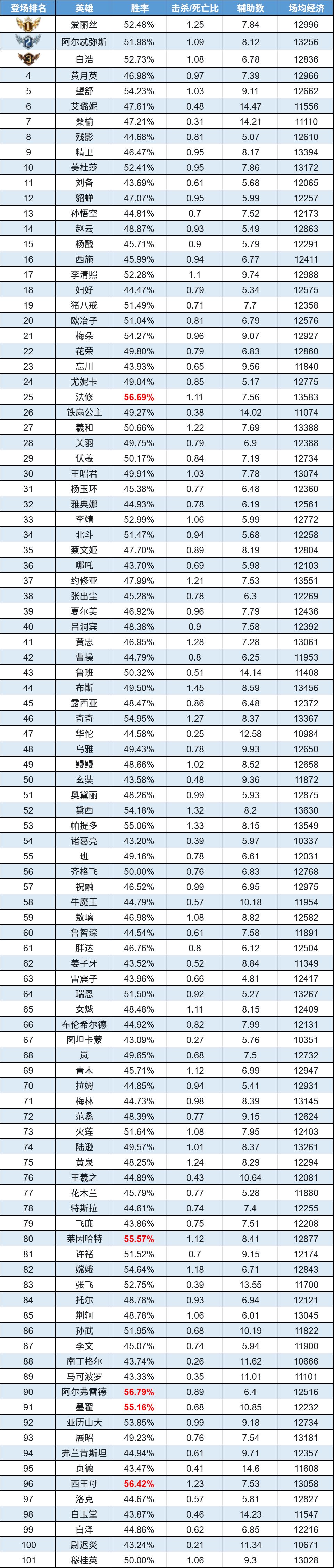 禁用率榜-黛西登顶,帕提多爬楼攀升ing
