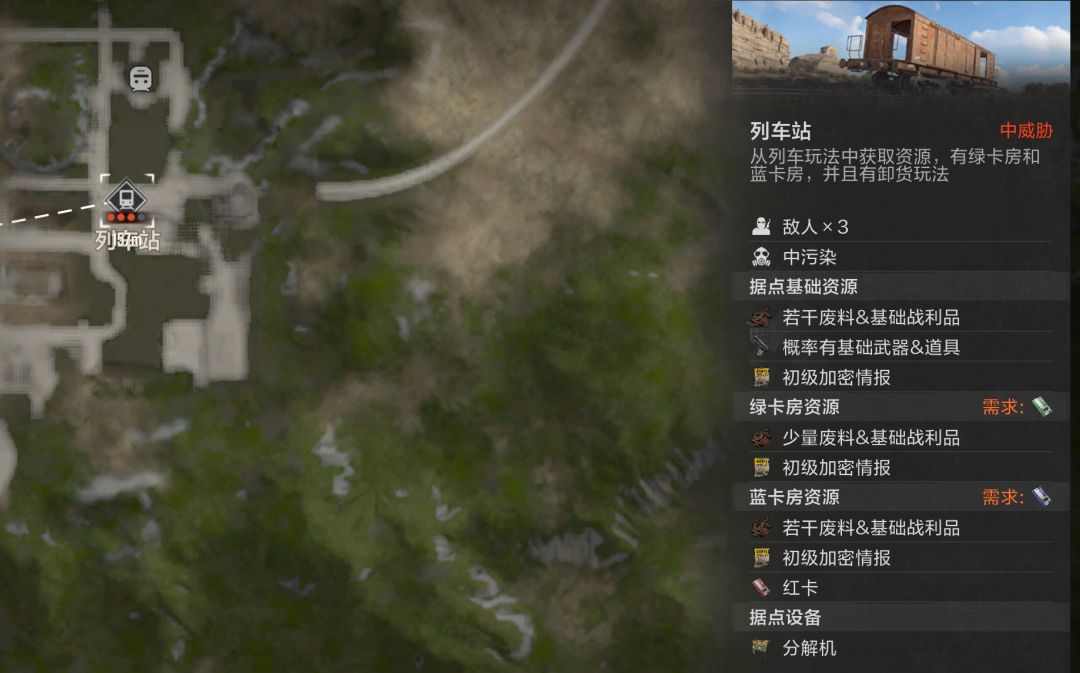 - 核心产出:绿卡房(无蓝卡)、蓝卡房(含红卡)、列车卸货物资