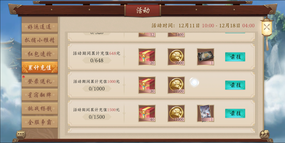 活动期间,累计充值达到一定数额即可领取额外奖励!
