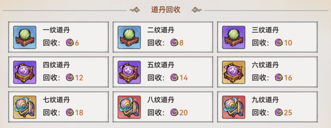 九转金丹:给平时刷到好词条的五行蛊、五行禅,双速画或者好的后勤弟子升品用。