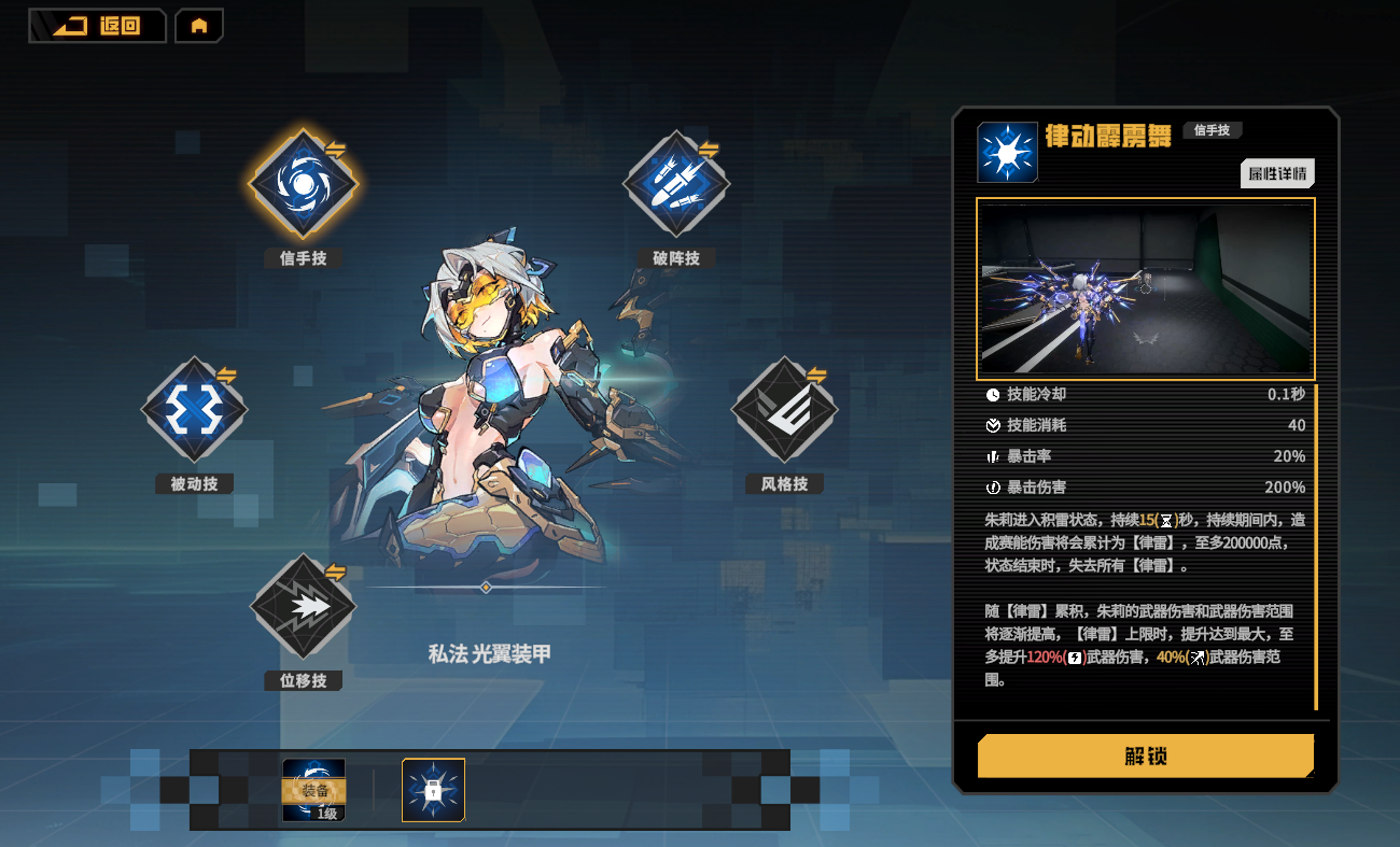 2、聚合:消耗时能晶核可以对具装的技能进行解锁,解锁后的具装技能可以随时替换;不同技能的初始等级不同,可对部分具装技能进行强化升级,强化升级满级后效果提升 10%~15%。