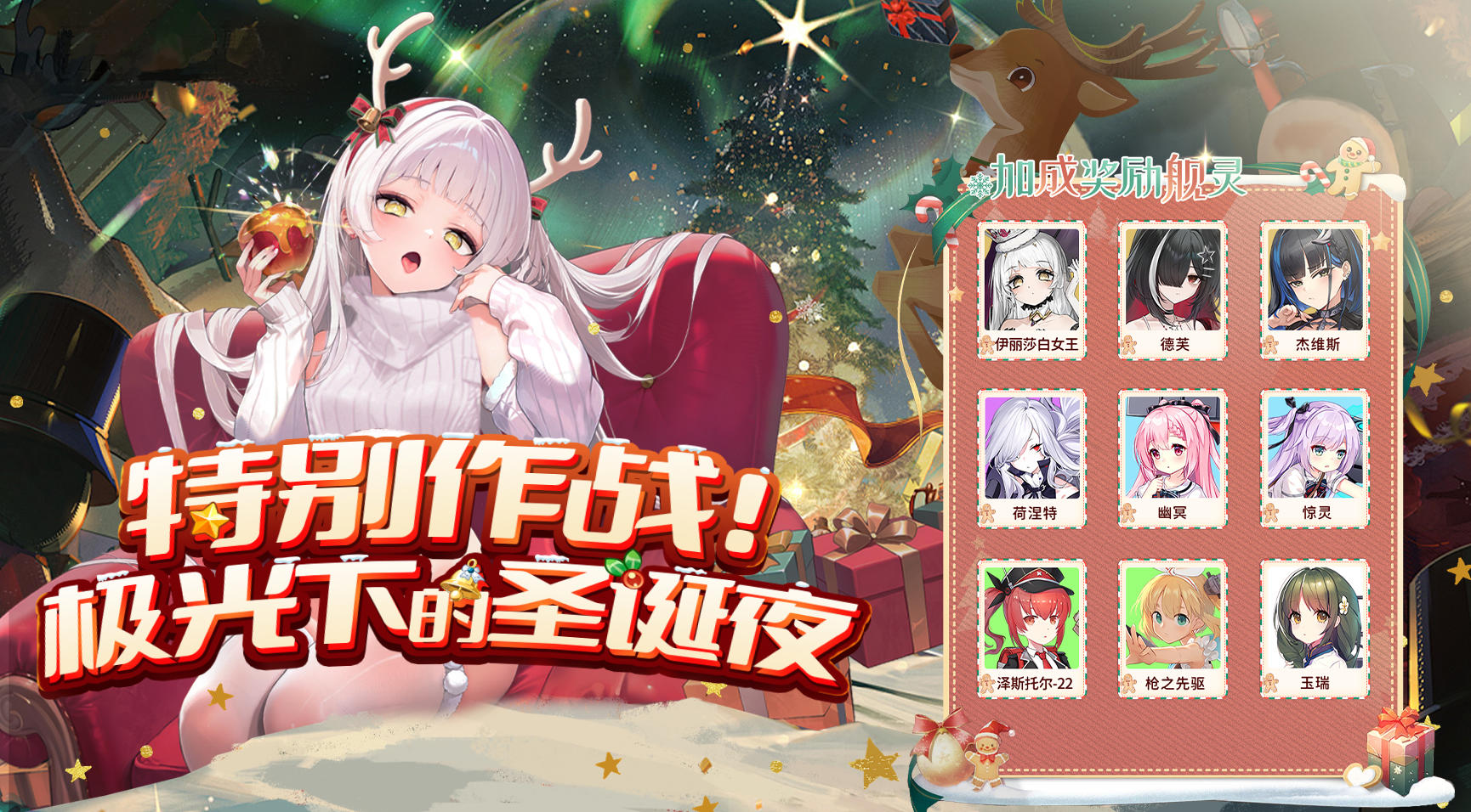 活动说明:活动期间,指挥官可挑战「特别作战!极光下的圣诞夜」关卡,获取活动积分「糖果杖」,用于兑换活动奖励。关卡难度越高,获得的积分越多,同时有机会在通关后获取特定舰灵。