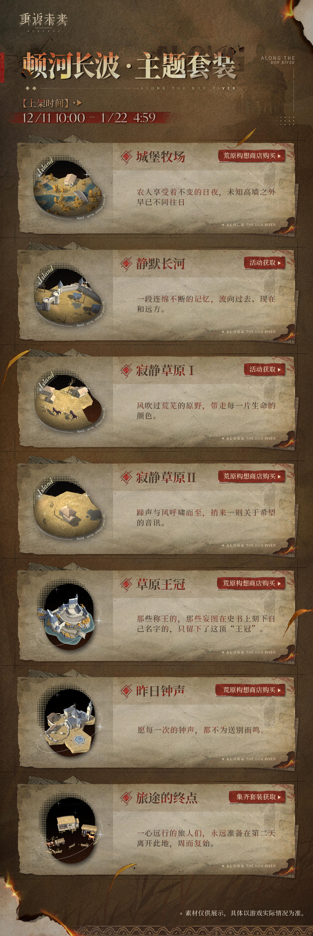 活动期间【顿河长波】主题套装(部分)将在荒原商店上架并限时售卖;