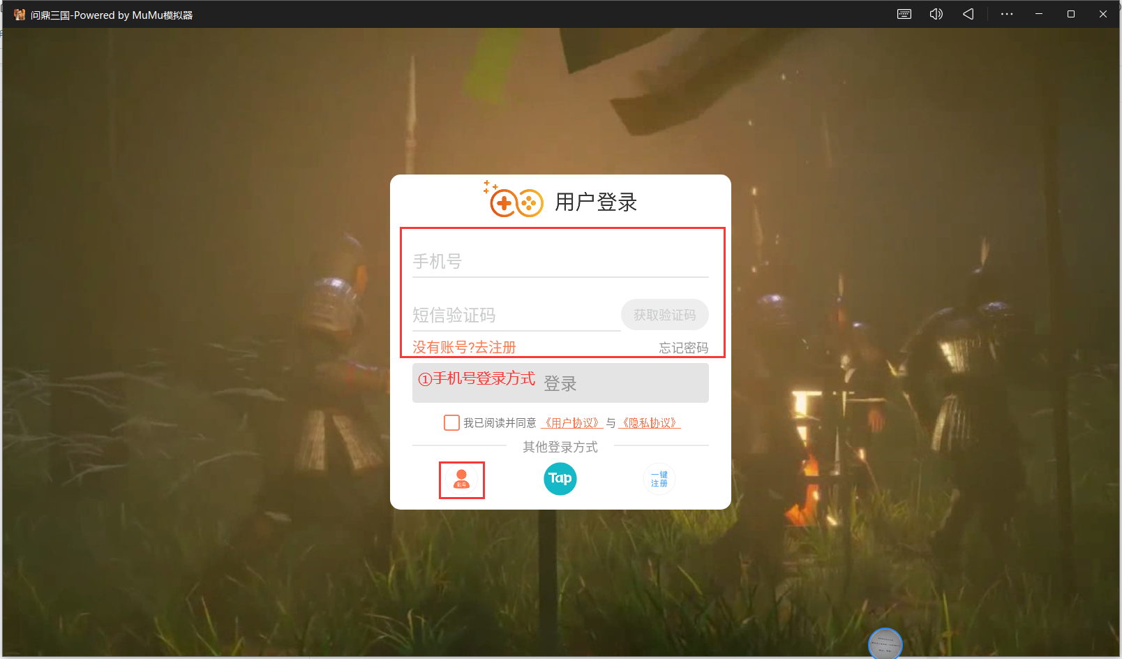①手机号注册的官方账号方式,输入手机号+验证码即可登录。