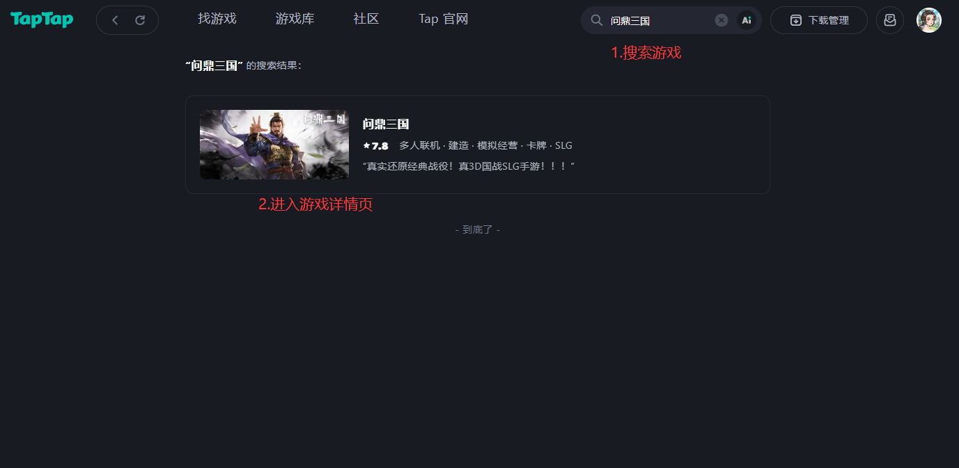 第三步:搜索“问鼎三国”,进入首页。