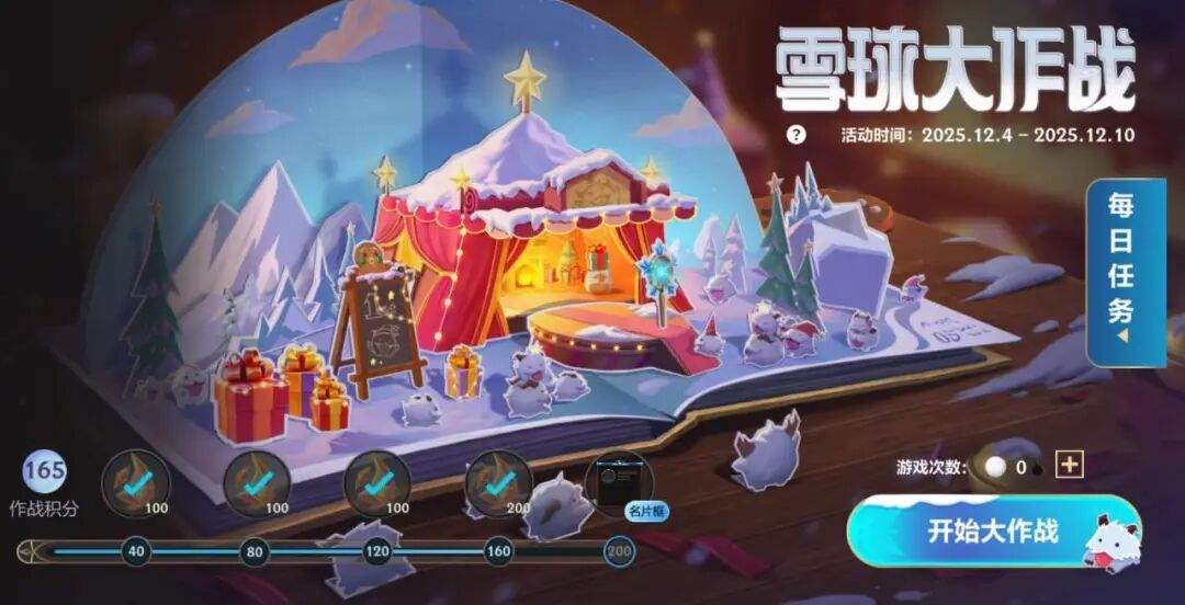 “雪球大作战”活动结束倒计时3天!截止至12月10日,召唤师完成任务即可获得龙魂水晶*500、名片框-冰雪之约奖励~