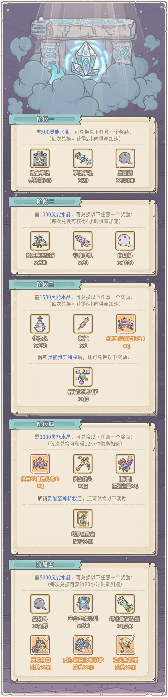 活动期间,消耗供奉加速(小时),可获得以下奖励: