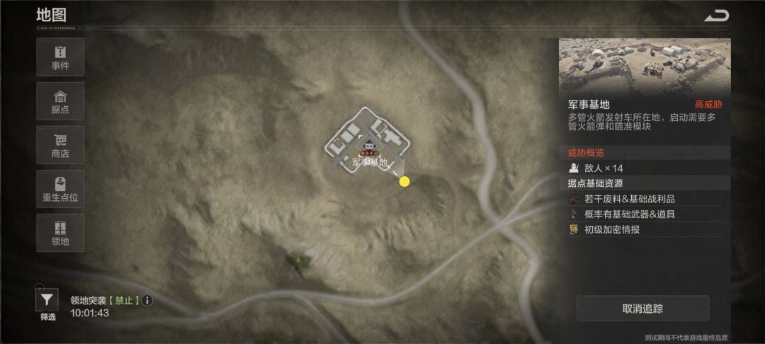 这就是军事基地的整体模样啦!作为4星资源点,这里不仅物资密度高,还会遇到图中的NPC 需要多多注意哦! 核心物资包含: