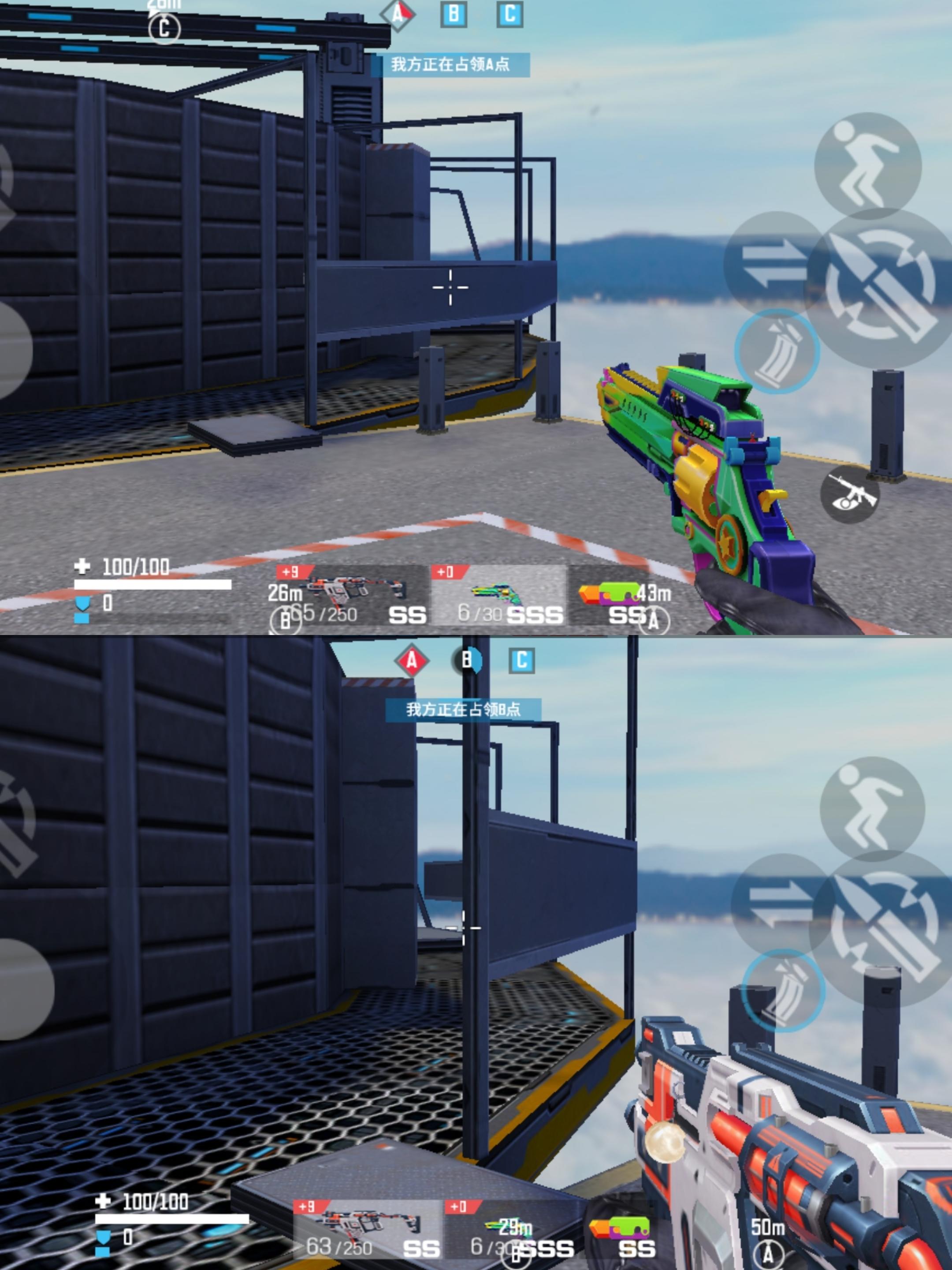 占点模式则为占着茅坑不拉屎,努力把来拉屎的敌人赶走,在三个点位占领的时间越长,获得的积分越多,多的那方获胜。
