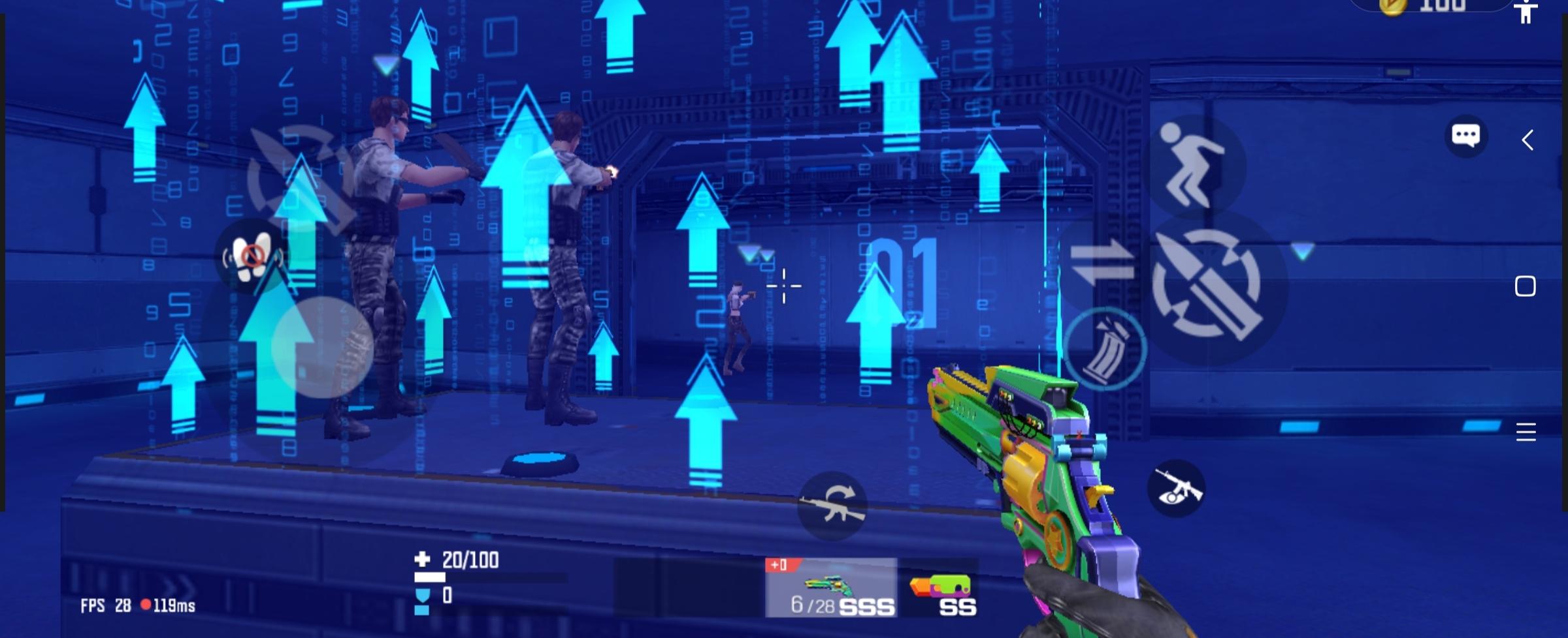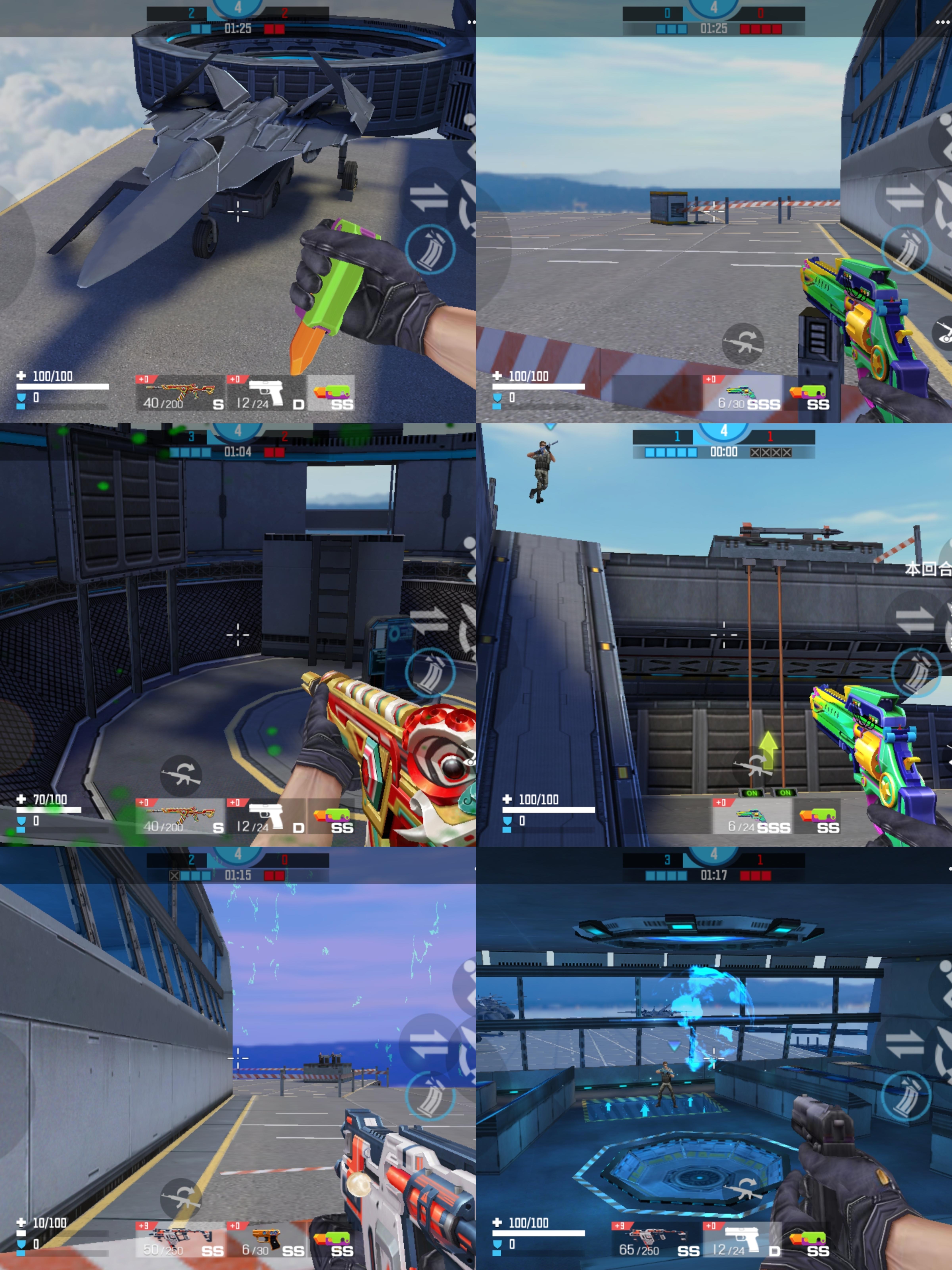 这张图还有一些小彩蛋,像图一中的飞机的登机梯是可以上去的,但是进飞机就别想了,这里是全民枪神不是全民机长(不过这个点位可以来直接攻击对方刚刚复活的人)。此外,地图中还有丰富的全息投影设计,如图六,鄙人猜测这可能会是往后运用在武器中的新技术。