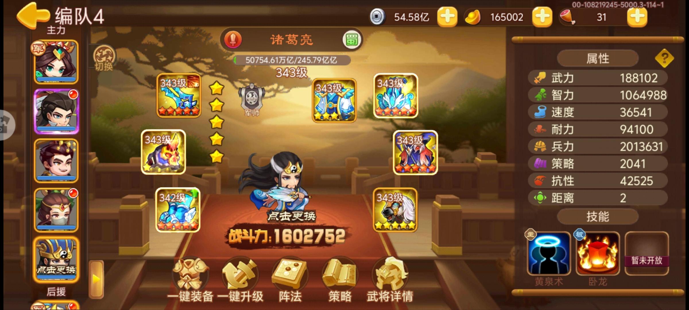 金诸葛亮:百川剑(火刃)+鬼面甲(魏制)+百川鞋(流星)+百川头(宿仇)+兽戒(浴血),106万智力,词条只有一个魏国攻击7%