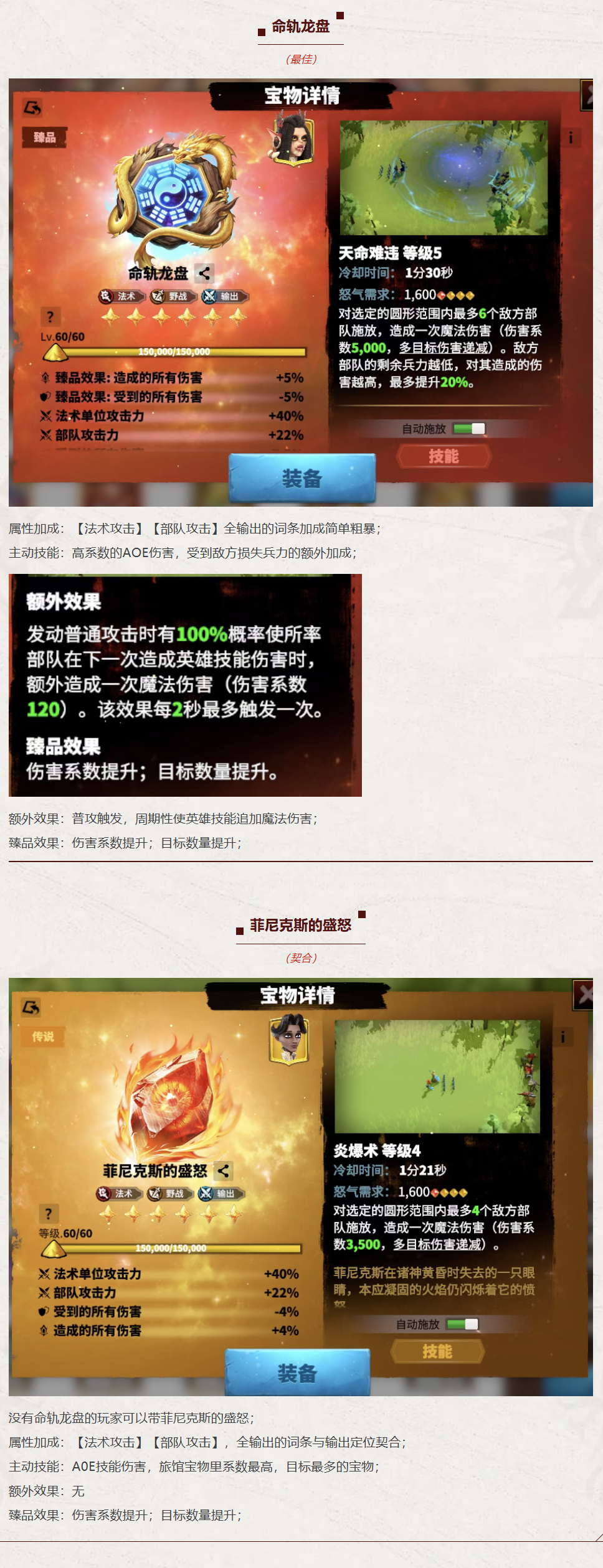 可选择打上【熔狱3件套】提升天赋技能的直接输出;【纷展3件套】让天赋技能再来一次,此次技能有额外的50%的暴击率;剩下的2个技能建议打上【宠技爆】幸运法球;【宠技爆伤】仙灵之能;满【智力】【幸运】属性这个技能组合下,怒气技能有50%+的暴击率;纷展100%触发,输出为天赋技能的80%+的伤害,100%暴击;暴击倍率约为1.9倍+;