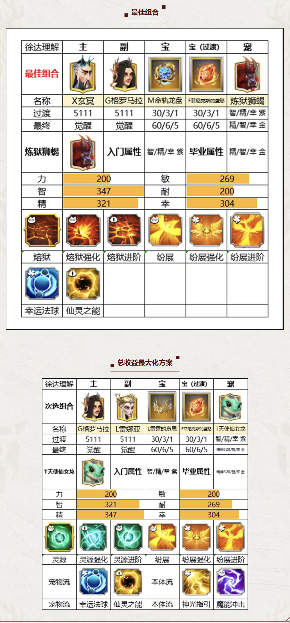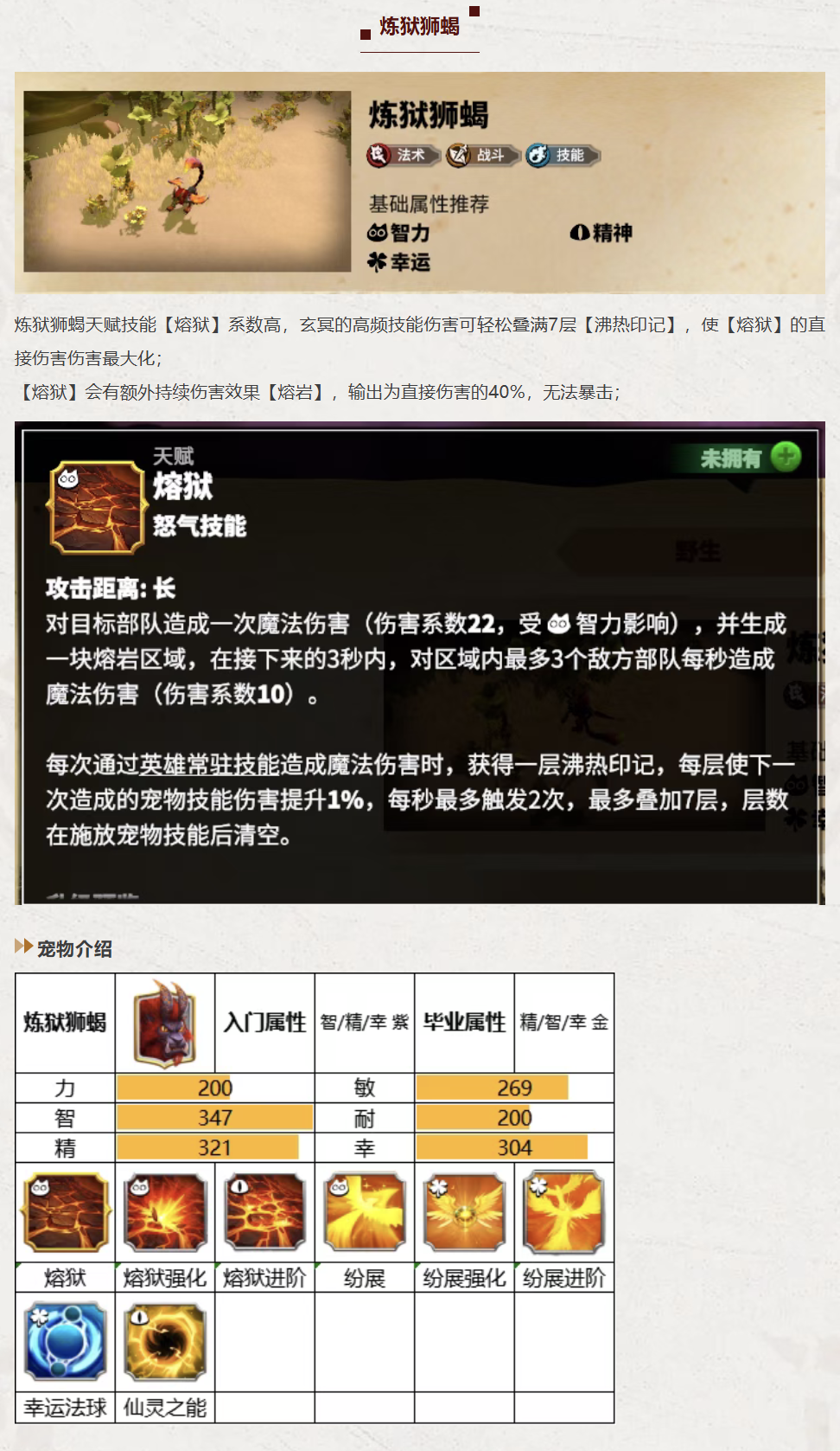 炼狱狮蝎【智力】【精神】【幸运】上限高,对法术类技能加成非常不错;