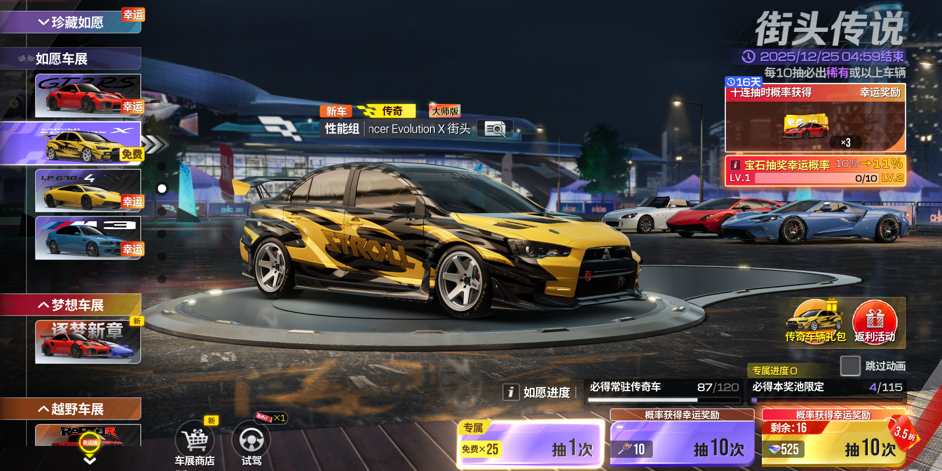 街霸终极形态登场!100+免费抽零成本解锁三菱 EVO X大师版