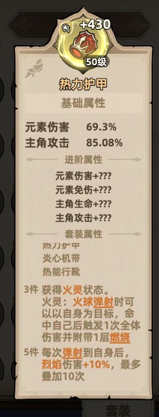 烈焰英灵当前版本最强圣遗物套装,集齐3件套和5件套,能大幅提升烈焰英灵的燃烧叠层效率与伤害。集齐3件套可以强化【火球弹射】,火球弹射可以以自身为目标,命中自己后触发1次全体伤害并附带1层燃烧,大大提高燃烧叠层效率。集齐5件套则可以进一步强化烈焰伤害,每次弹射到自身后,都能叠加10%的烈焰伤害加成,最高叠加到100%,结合3件套与其他技能选项带来的高频叠层效率,可以快速提升烈焰伤害,真正的火灵降临。