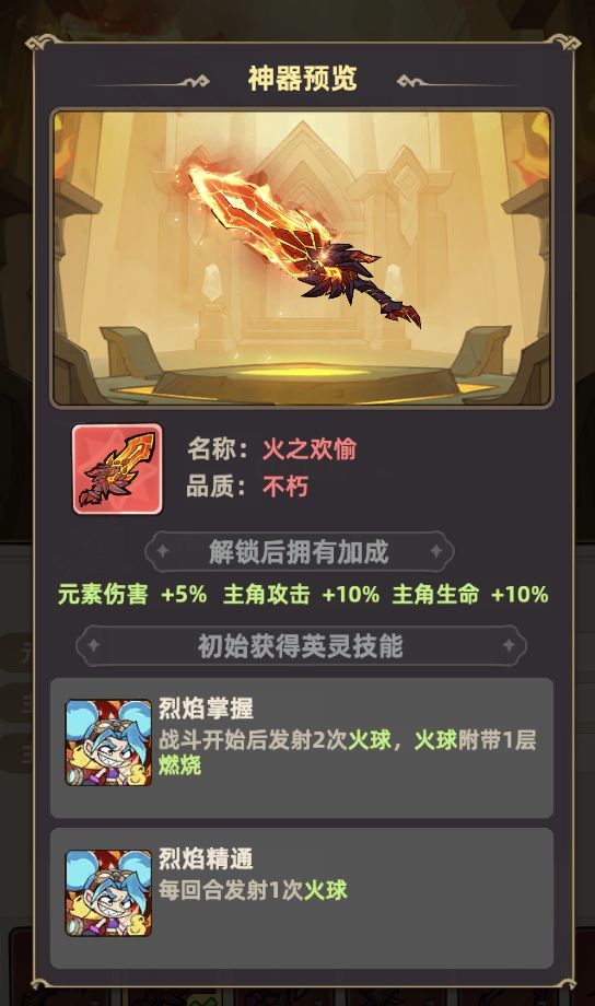 英灵等级提升至3级,局内可解锁【炎爆】选项。每回合召唤1次炎爆造成范围伤害,附带2层燃烧,提升烈焰英灵的群体输出能力与叠层速度。