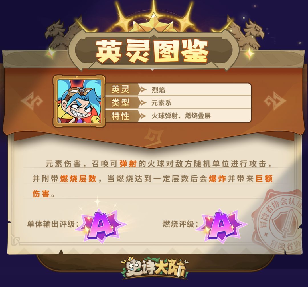 英灵等级提升至9级,局内可解锁燃烧满叠层爆炸的效果。目标燃烧达到5层时,清空目标的燃烧状态并造成90%攻击的烈焰伤害,真正解放烈焰英灵的输出限制,疯狂叠层后疯狂爆炸输出,烈焰必点核心技能。