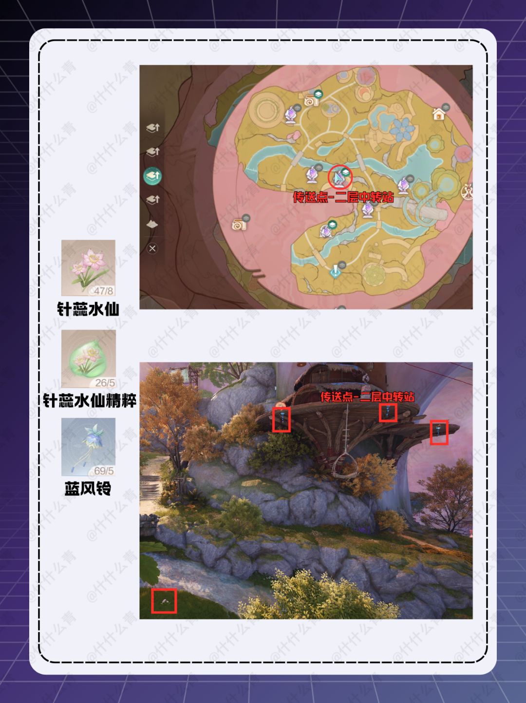 *图中除[大地晶珀·性感]和[彩翎鱼]外的材料点位非唯一,仅提供一个初始获取点位,后续可通过追踪获取