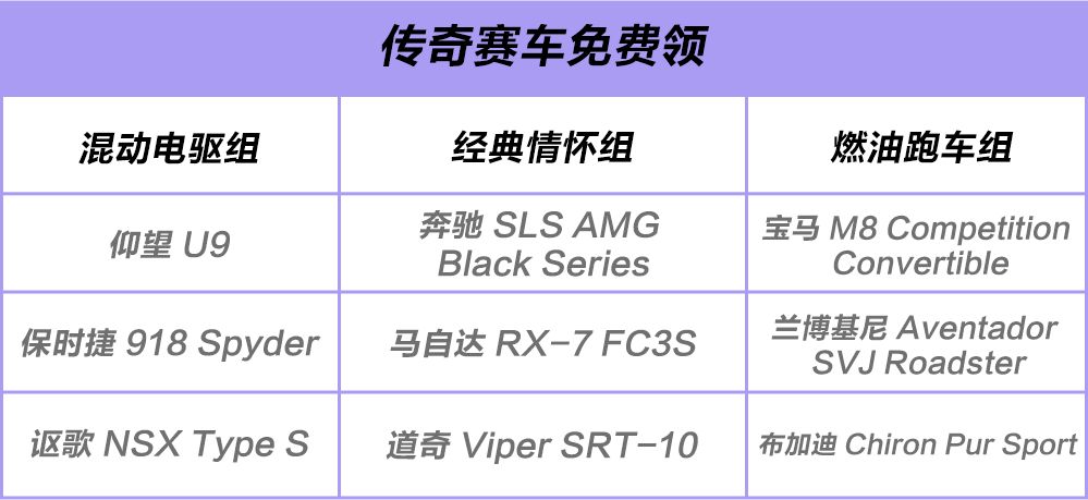 12月18日起,参与活动,可免费领取3辆传奇赛车。