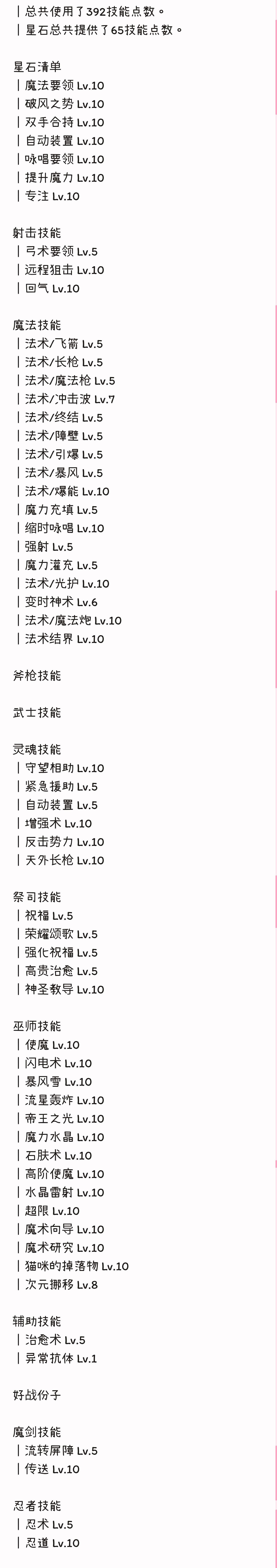 技能点不够先舍去忍者技能和武士技能,仅保留忍术技能的1点。好战份子中仅专注相对有必要,提升魔力的提升幅度相对较小。如果还缺技能点,则考虑不点传送或降低光护加点或者干脆不点。暴击不够苦无打黄字的需要点稳定术,卡斯抗暴65。