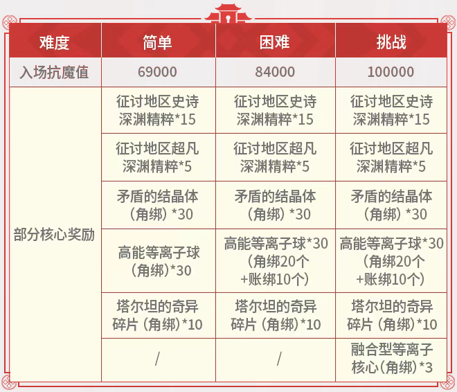 这次的超越本应该是70版本的最后一个了,难度相对大部分玩家来说还是比较大的,尤其是0氪玩家,如果平时不注意打造副c,将很难凑齐5个10万抗魔的角色,实在凑不齐选择低一级难度的挑战也不会影响太多东西,仅仅只是副c比别人的特殊装备贴膜慢4周,按照手游传统,明年1月将上线的困难安图恩大概率会产出史诗贴膜材料,所以大家也不用太过强求达到10万抗魔,另外新超越本的刷新时间也与前两个错开了,设定为了每周五刷新,这点还是不错的,最后祝大家都能成功通关新超越副本。