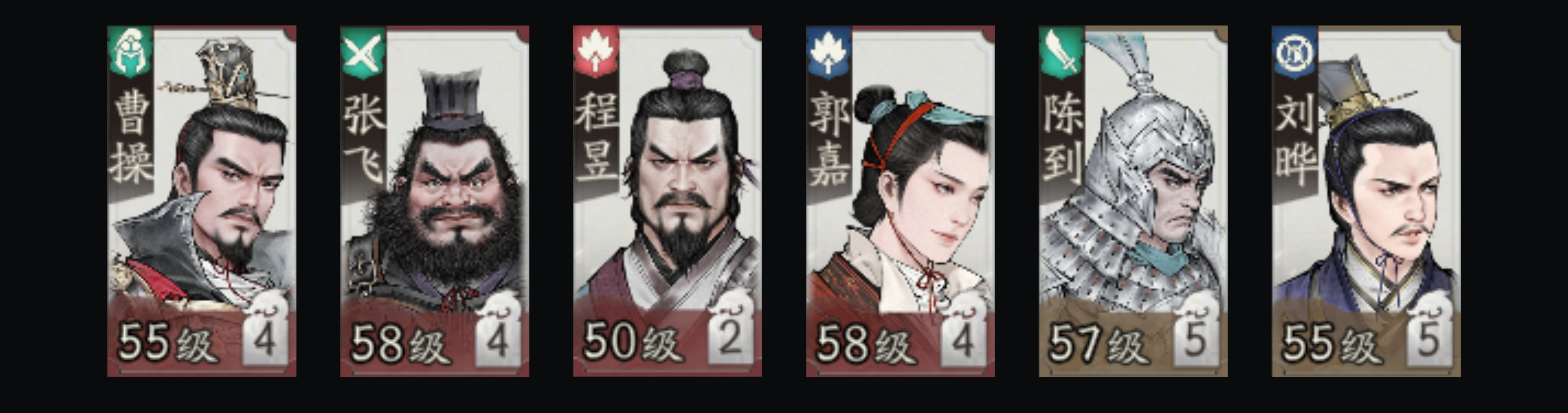 曹操、张飞、程昱、郭嘉、陈到、刘晔