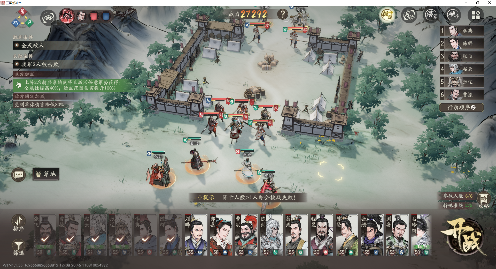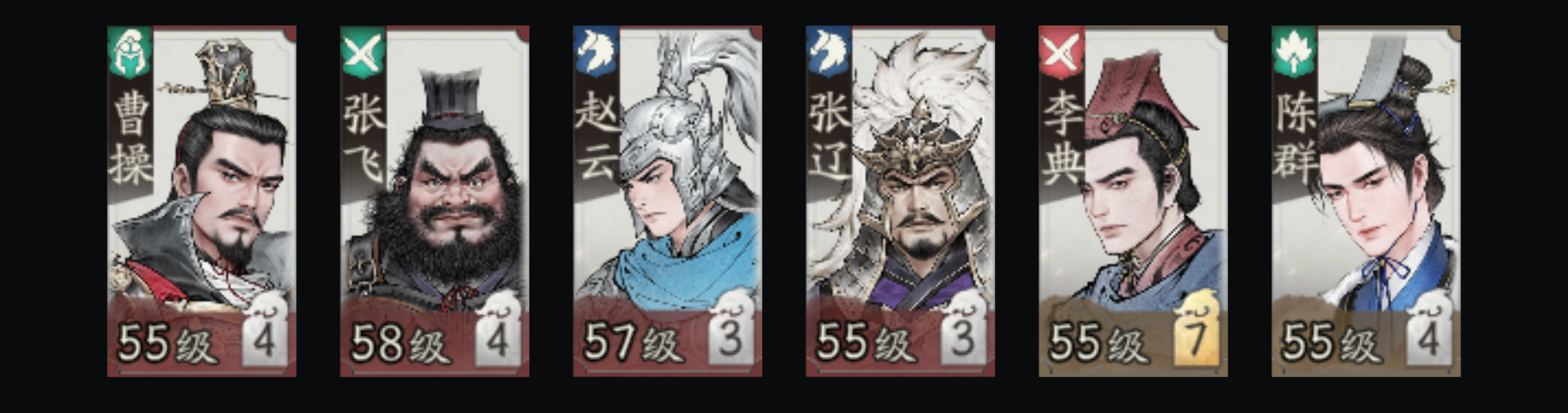 曹操、张飞、赵云、张辽、李典、陈群