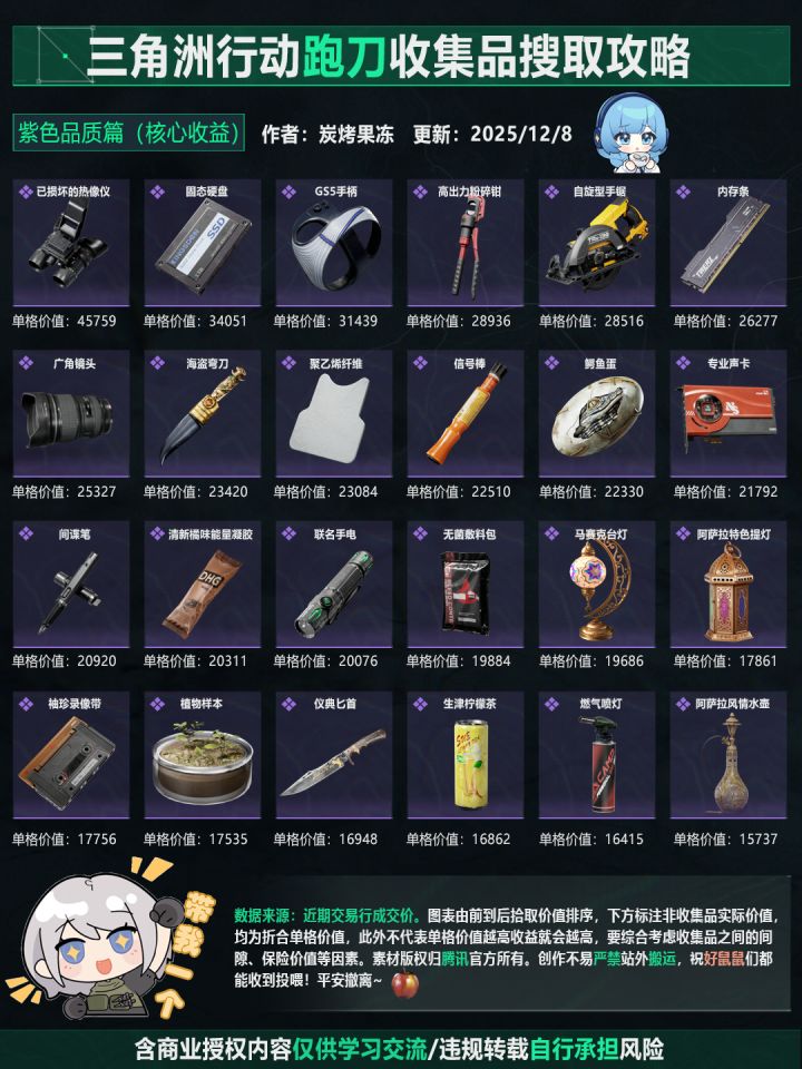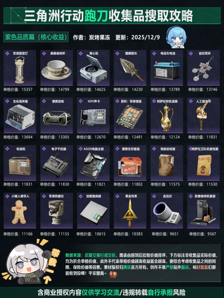 三角洲行动跑刀收集品价值攻略(紫色)
