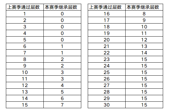 3.小奥拉在首次进入新赛季的轮回塔时,会根据上赛季轮回塔的最高通过层数,在这赛季可以直接通过前面指定层数且发放这些通过层数的奖励;
