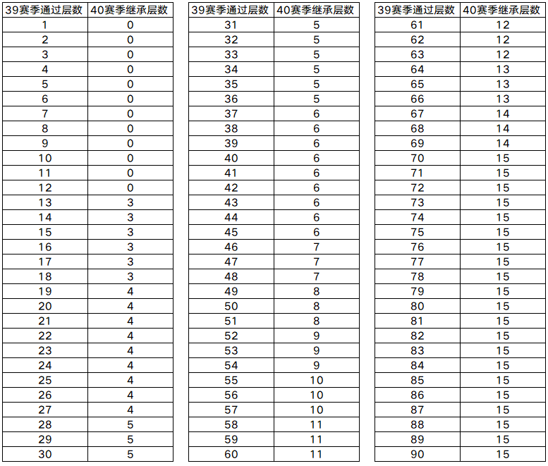 5.第四十赛季结算时,赛季继承规则将更新为: