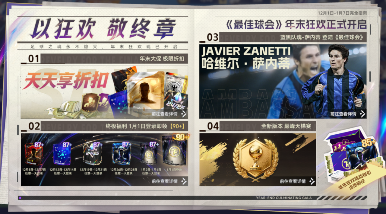 以狂欢,敬终章。足球之魂永不熄灭,年末狂欢现已开启。就让《最佳球会》为各位主帅点亮年末最璀璨的烟火。让激情与豪礼一起为你的球队写下年度收官的高光瞬间!