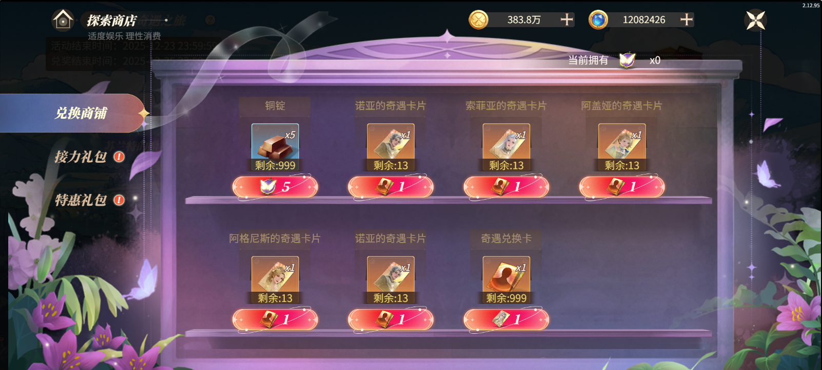 在活动的兑换商铺中,本次提供【苏兰特的奇遇卡片】、传说探索珍宝【初拥】、传说收藏品守望、庄园外观自选礼盒,等极品道具以及自选徽章礼盒可供兑换(溢出的奇遇卡片,可兑换为其他伙伴的奇遇卡片)