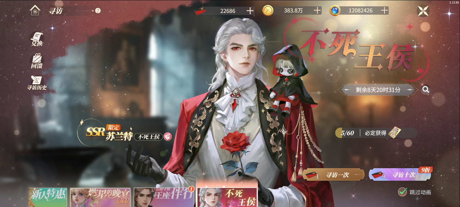 点击伙伴-信息,在信息界面,可以点击奇遇入口(36级开启)、换装。通过寻访,获得奇遇苏兰特后,在换装界面可以选择更换苏兰特的奇遇形象(不死王侯礼装)