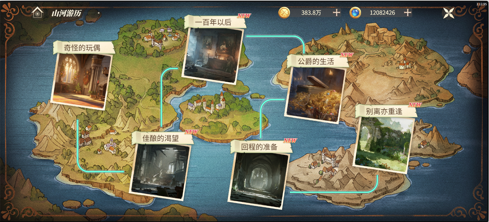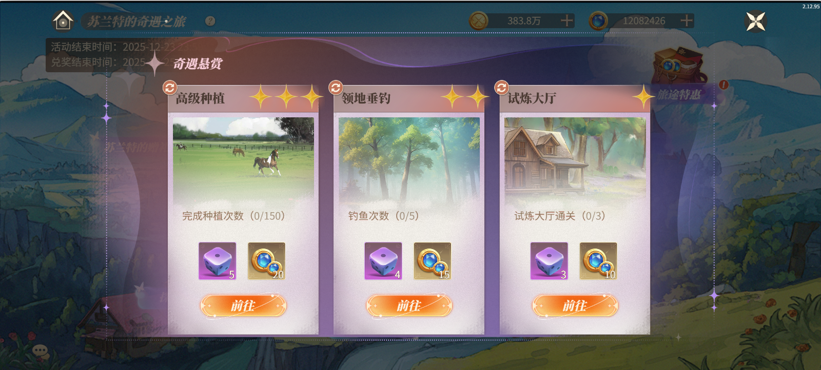 进入奇遇界面,从左至右依次点击任务气泡,可消耗【苏兰特的奇遇卡片】开启奇遇。