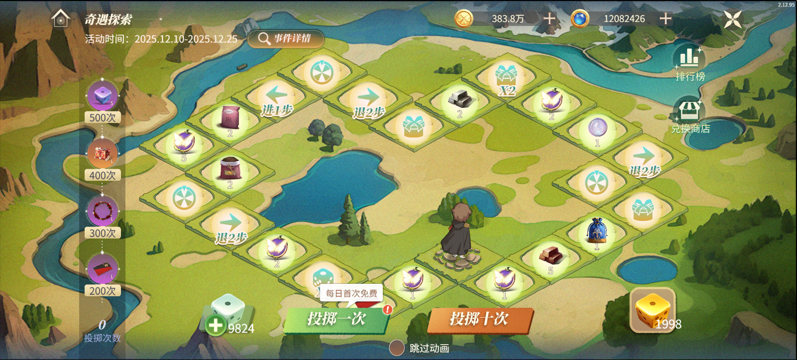 ⑤探索设有排行奖励,根据投掷次数排名,活动结束后发放。
