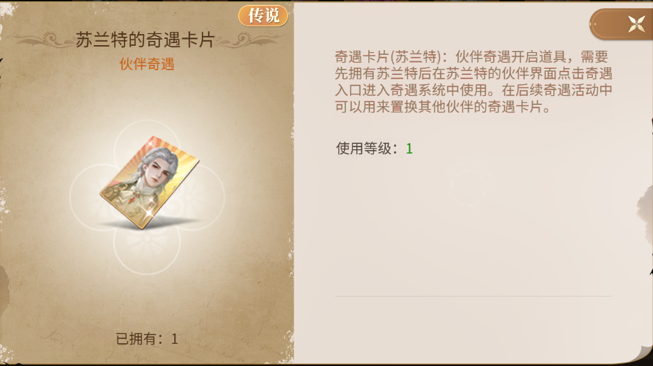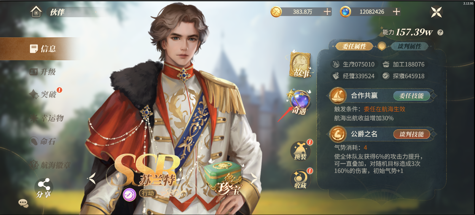 开启后触发伙伴特殊剧情,获得钻石和皇家寻访公函奖励。剧情中可触发战斗,在战斗成功结算后即可完成奇遇,并激活对应的技能加成效果。