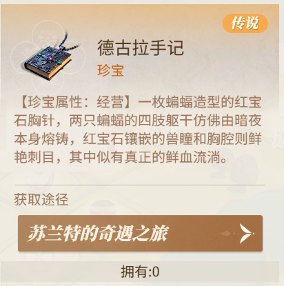 ④探索设有进度奖励:投掷300次获得【苏兰特之缘】头像框、投掷600次获得领地装饰物【苏兰特雕像】、投掷1500次获得公爵古堡领地装饰、投掷2000次获得经营珍宝【德古拉手记】