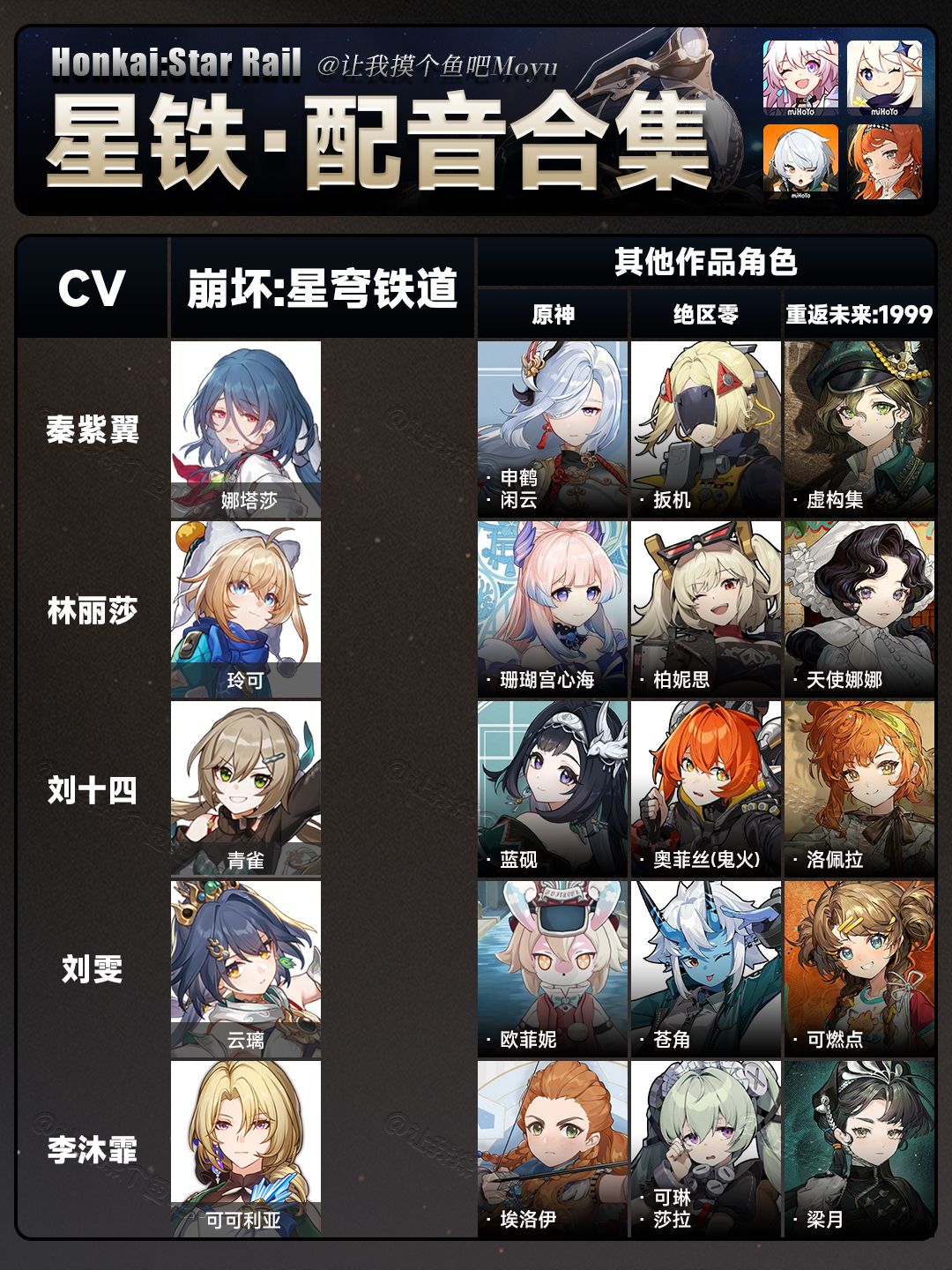 星穹铁道角色中文cv配音表——更新至3.7版本