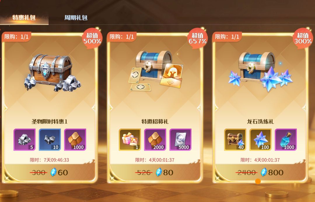 活动简介:活动期间领主可在商城超值礼包处购买相应的英雄圣物限时折扣礼包。