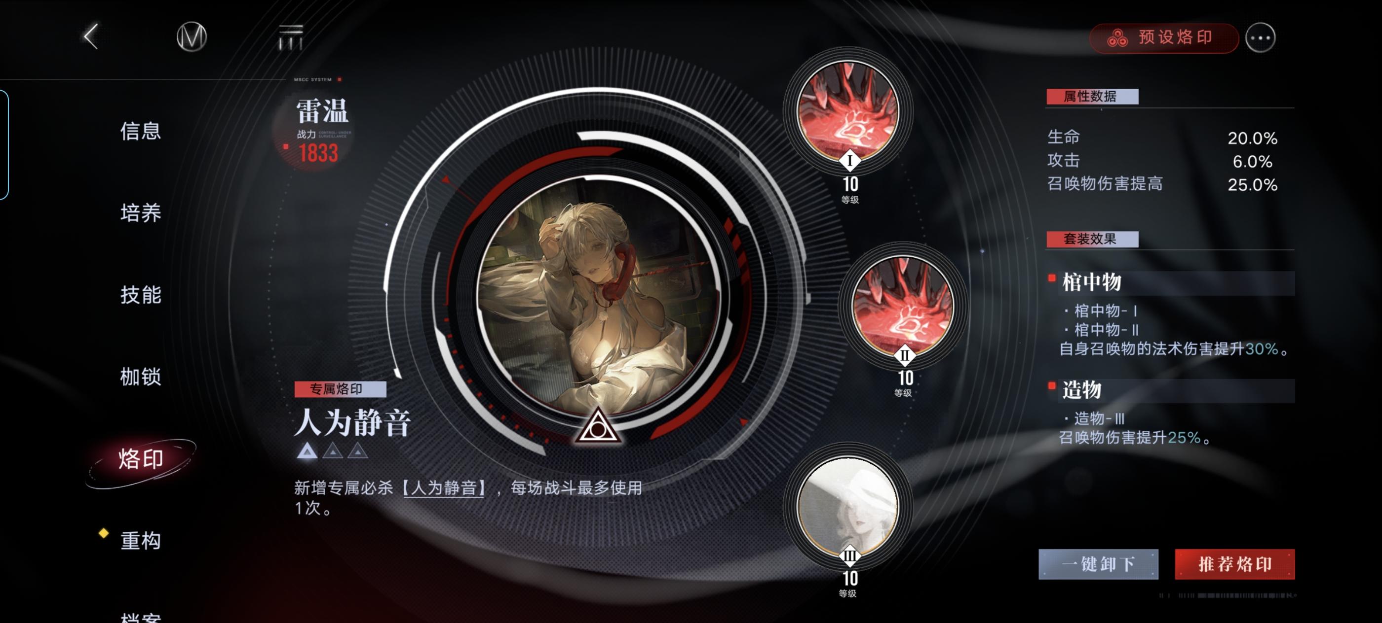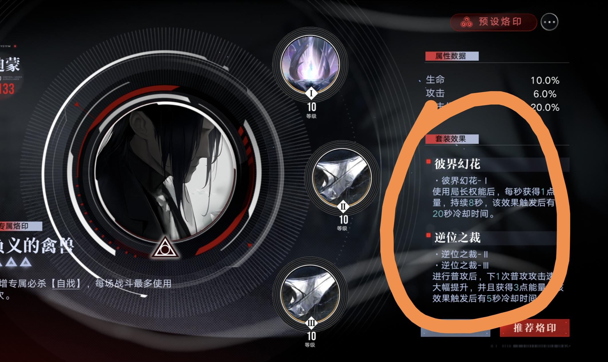 另外还有一些特定队伍或是特定角色烙印,如下所示的召唤队烙印、真伤烙印等。