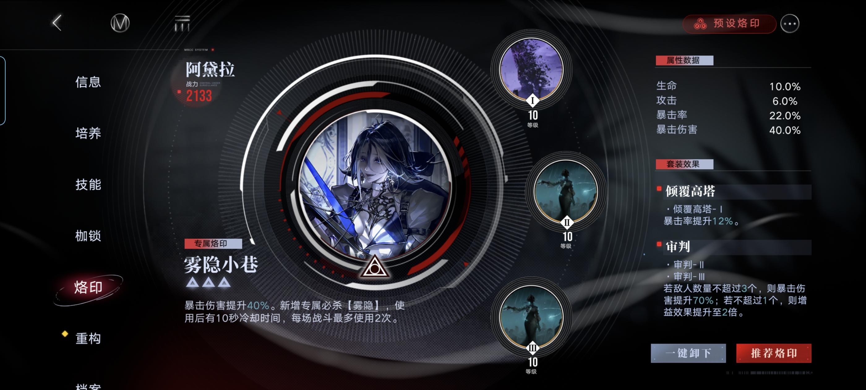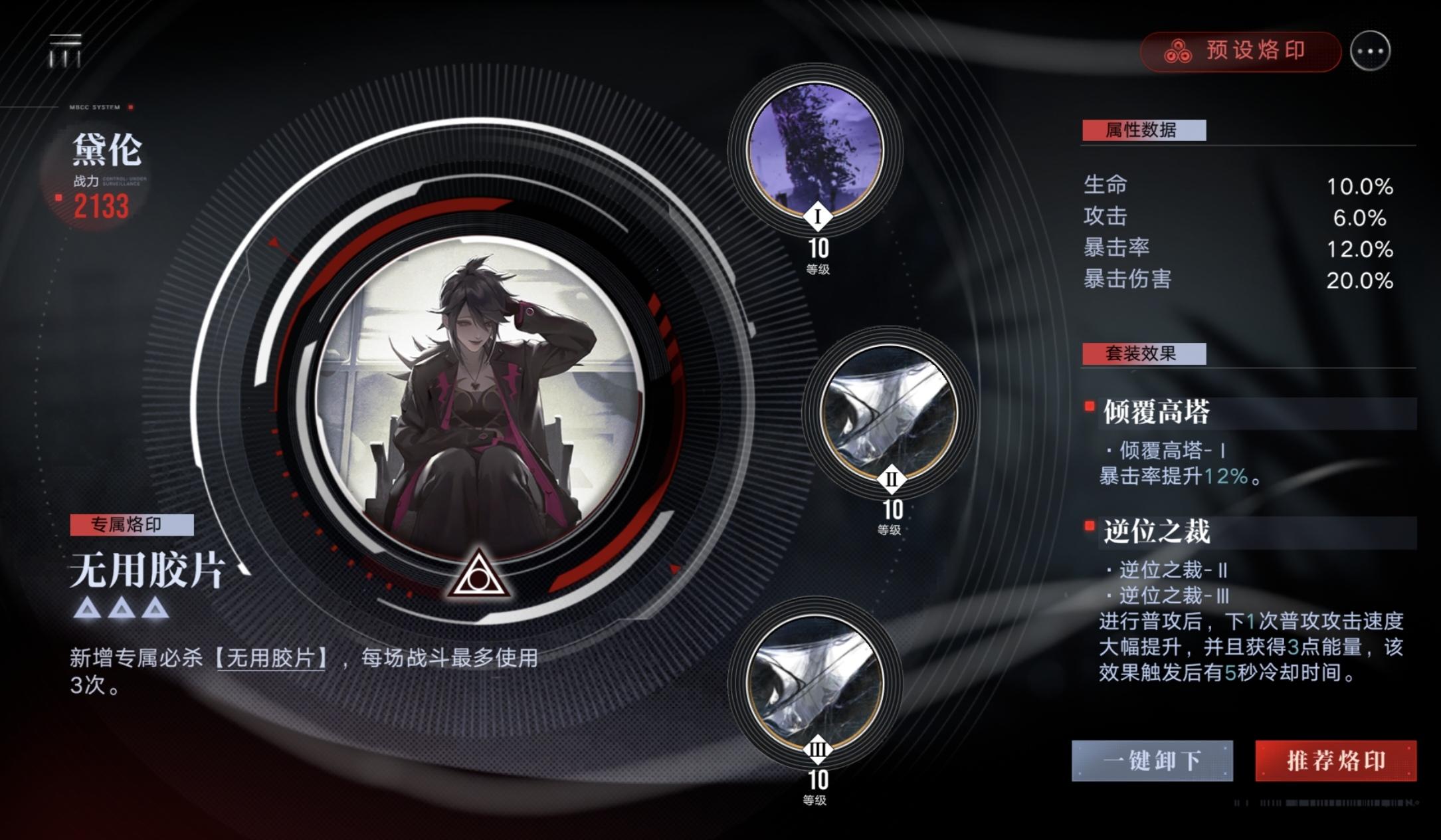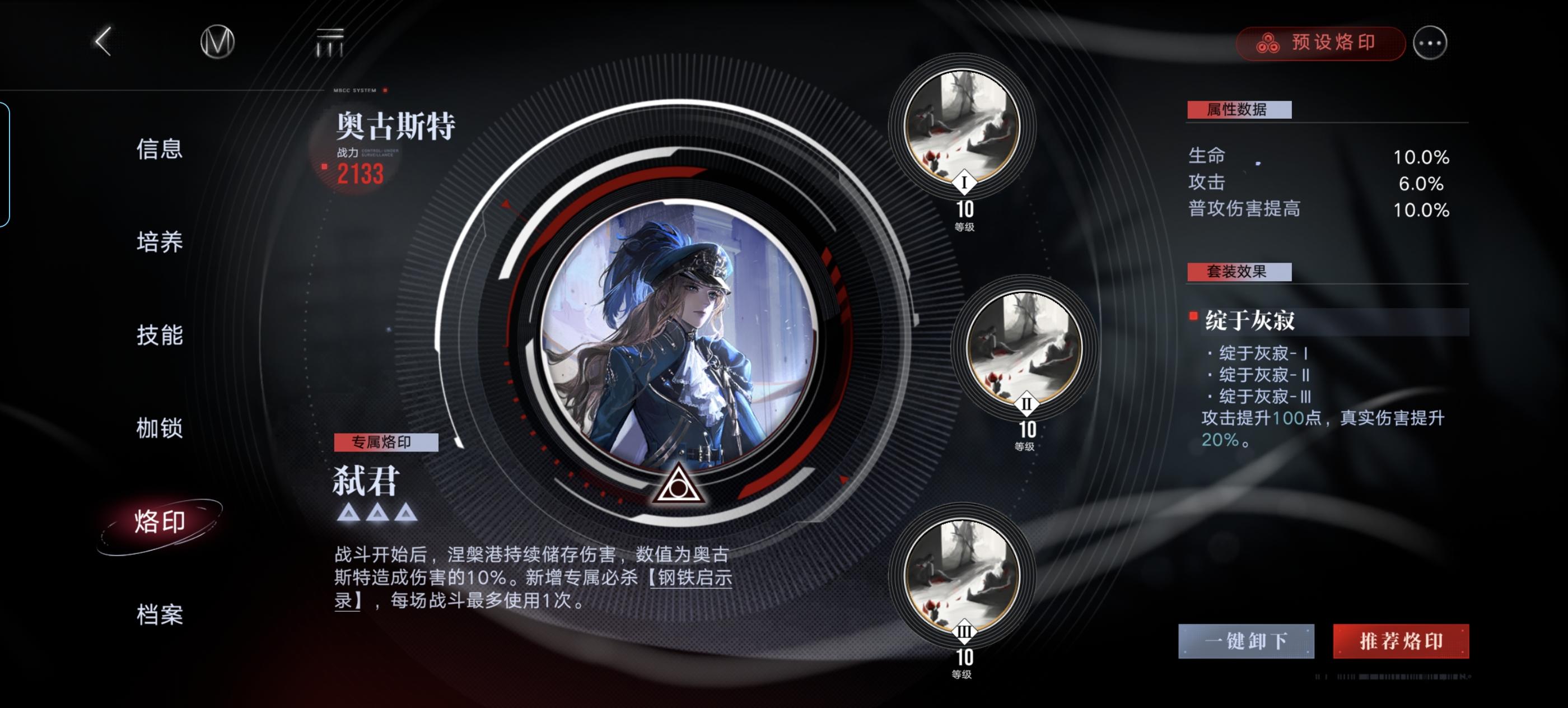 虽然很多角色有专属烙印,但游戏的发展也让角色再不同的环境可以更换烙印达到最佳效果。