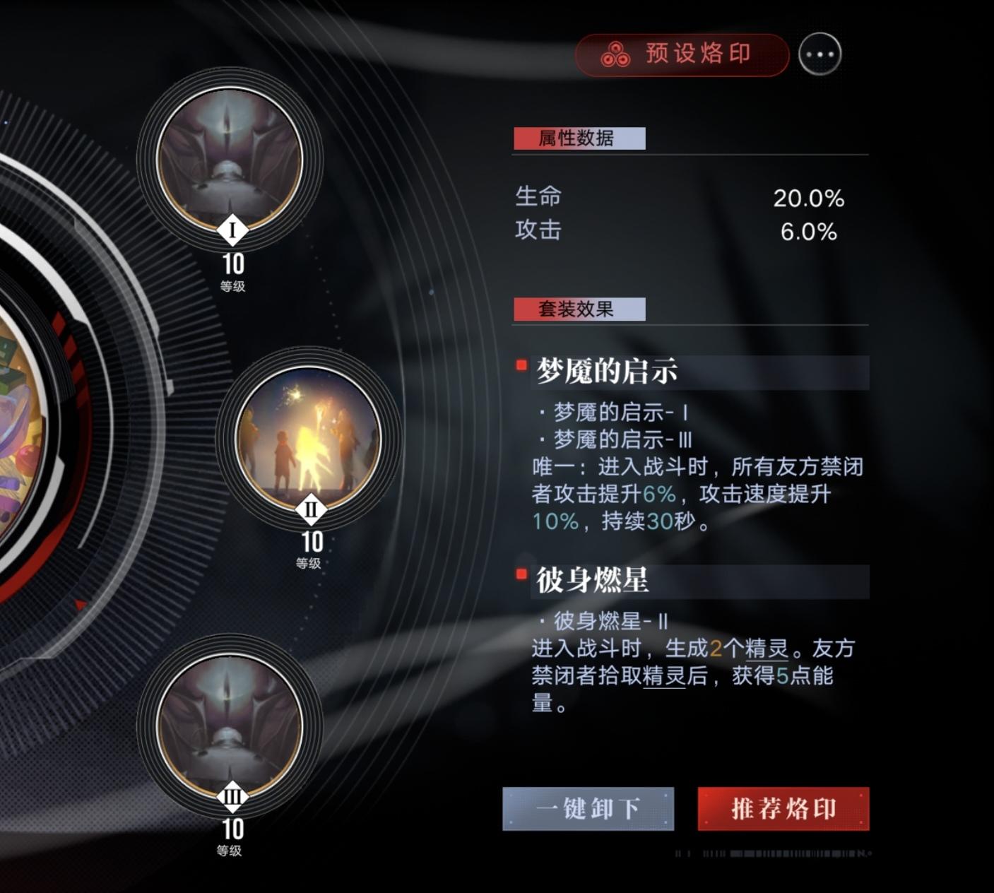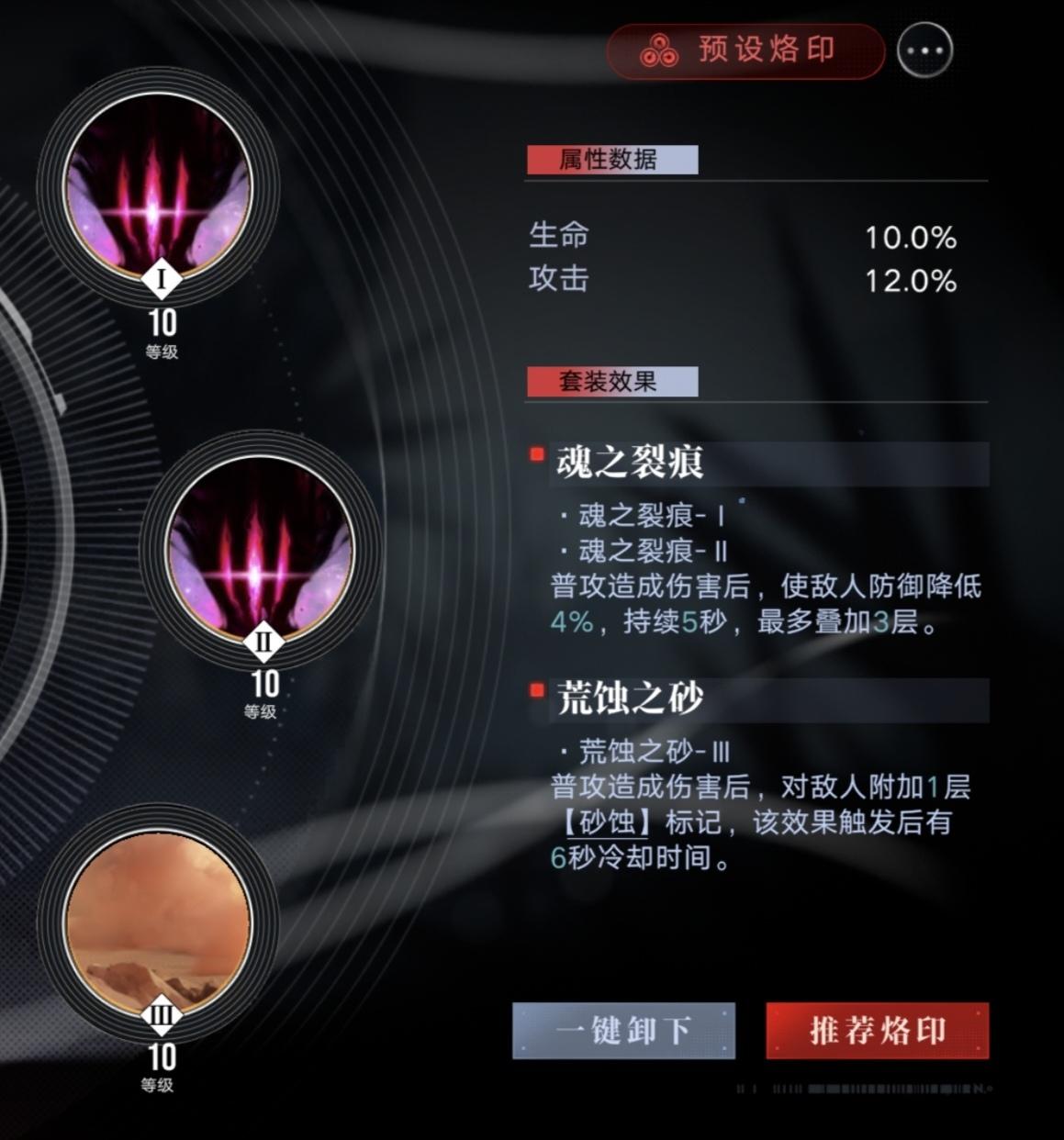 评价:好用,萌新前期最需要的烙印套组合。老登也要搭配几套出来给各个角色穿。